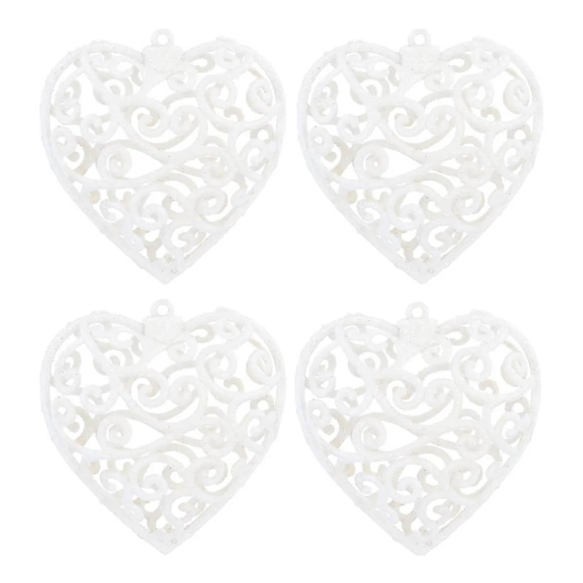 Mit diesem 4er Set eleganter Weihnachtsherzen in créme wird jeder Tannenbaum aufgewertet. Der aus Kunststoff hergestellte Christbaumschmuck mit einer Größe von 7,5 cm ist herrlich kombinierbar mit vielen Farben. Auch in Kombination mit anderem Glitzer-Christbaumschmuck sind die Herzen sehr gefragt.