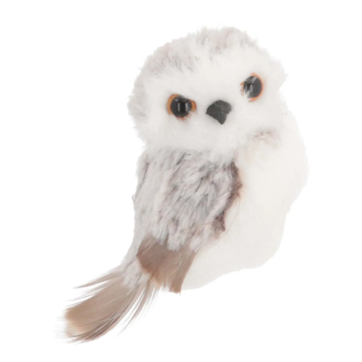 Niedliche Eule als Weihnachtsbaumanhänger, in braun und weiß gehalten. Hergestellt aus Kunstfell, im Inneren befindet sich Kunststoff. Die Eule ist 9 cm groß.