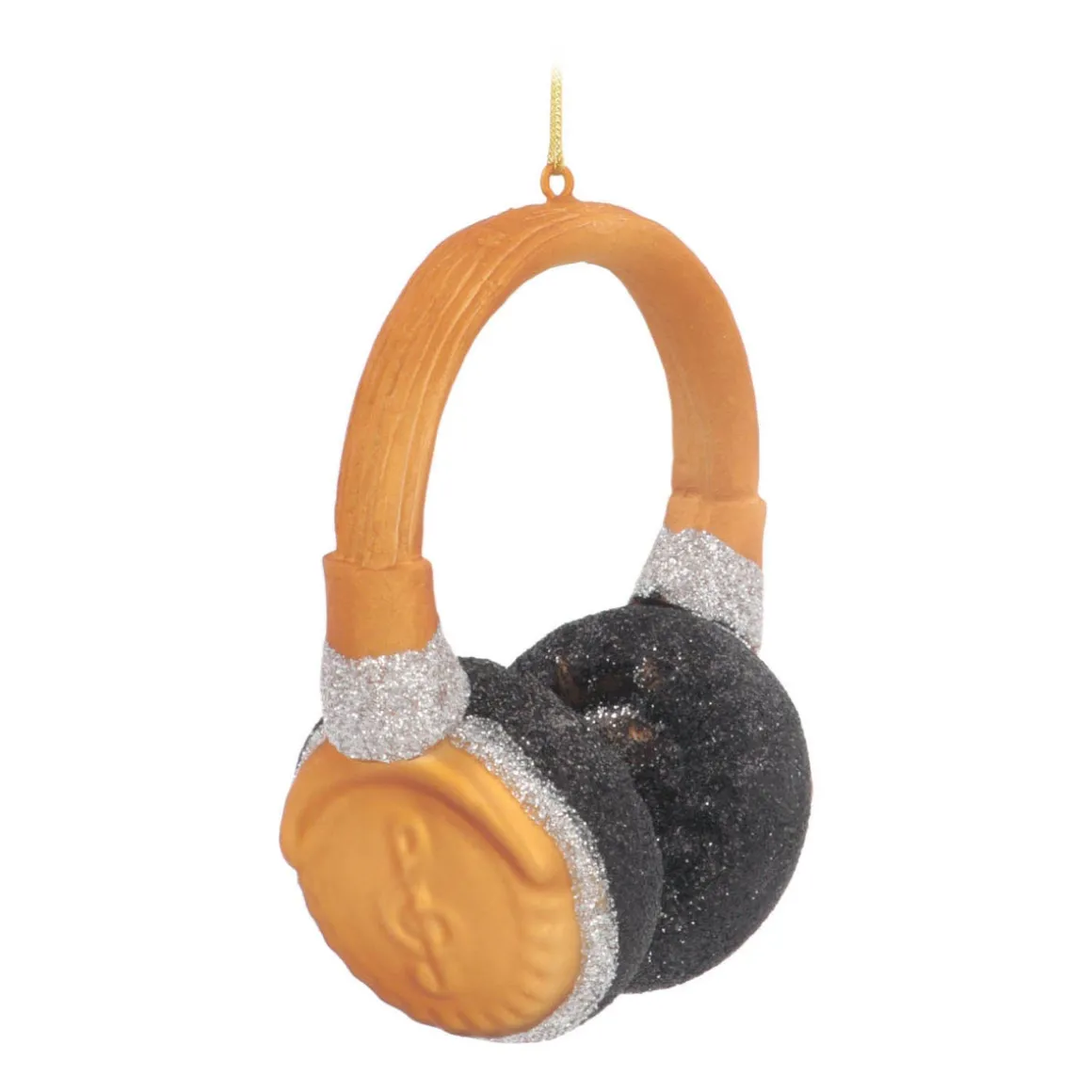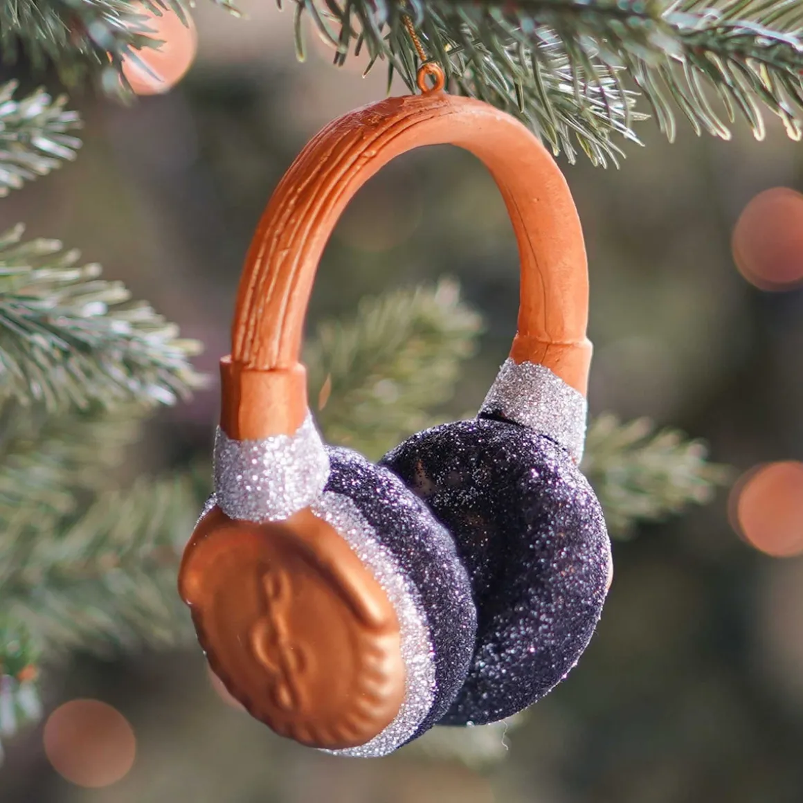 Weihnachtslieder spielt dieser wunderschöne Kopfhörer leider nicht, dafür ist er ein absoluter Eyecatcher im Weihnachtsbaum. Der rund 10 cm große Christbaumschmuck aus Glas ist vorwiegend Gold gehalten und wird durch silberne Glitzerelemente verziert. Die Ohrschützer sind wiederum mit schwarzem Glitzer versehen.