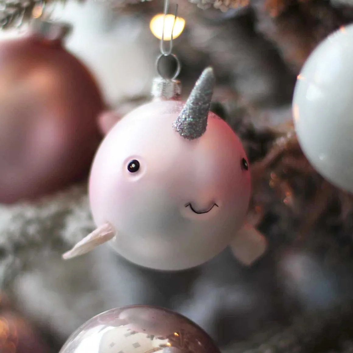 Herzerwärmend und dekorativ zugleich, dieser Narwal-Anhänger findet in jedem Zuhause einen netten Platz. Er lässt sich mit allen Farben und Designs kombinieren, wenngleich er sich besonders bei unseren Themen Ocean und Romantik oder nebst rosa Weihnachtsschmuck wohl fühlt. Dieser Anhänger überdauert das Weihnachtsfest und kann zu jeder Jahreszeit in der heimischen Deko eingesetzt werden.