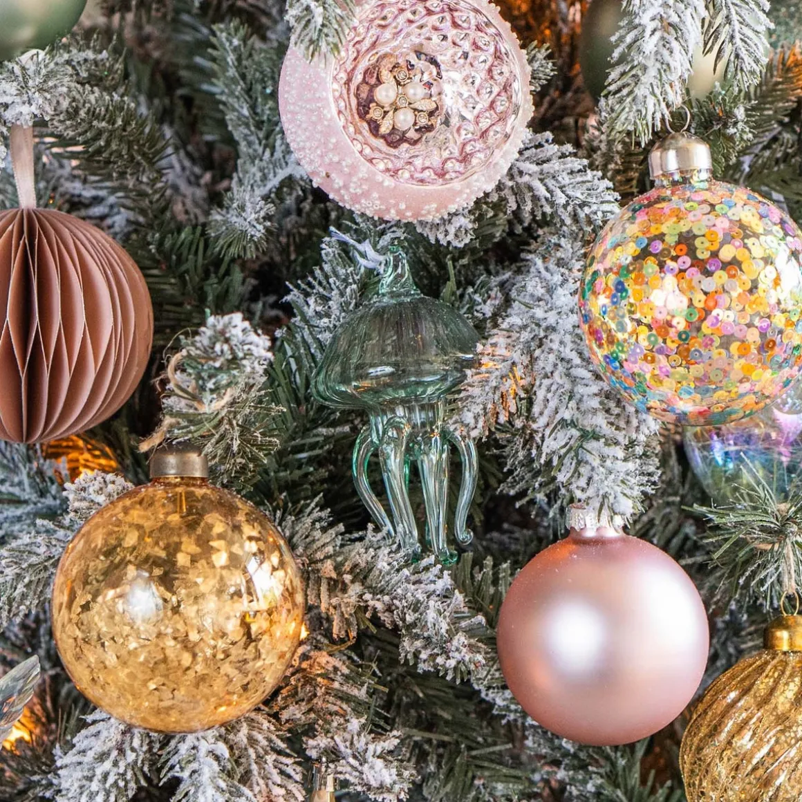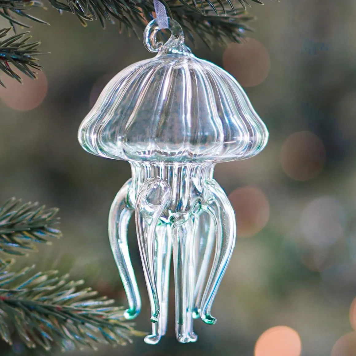 Eine Qualle im Christbaum sieht man gewiss nicht aller Tage, umso mehr ist sie ein absoluter Eyecatcher. Die Quallen-Figur besitzt die naturtypische Form der Meduse, mit dem markanten, schüsselförmigen Schirm und den langen Tentakeln. Farblich ist unsere Qualle in einem Pastellblau gehalten, was sie perfekt ins Bild romantischer Weihnachtsdekorationen bringt oder als Teil unseres Weihnachtsthemas Ocean Candy. In unserer Kollektion findet ihr mehrere Meeresbewohner, mit denen sich ein toller wie ausgefallener Weihnachtsbaum schmücken lässt.