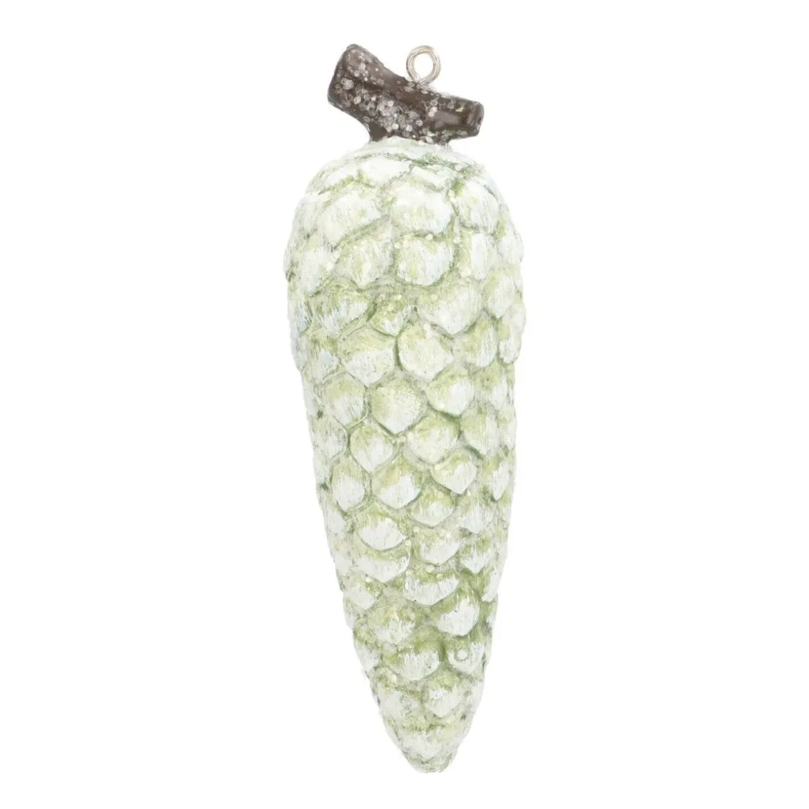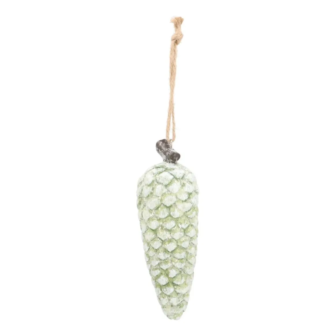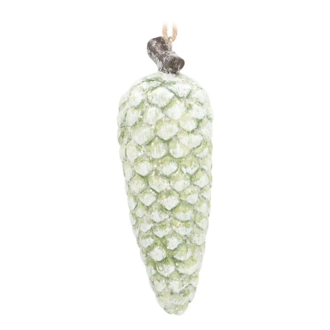 Schöner Tannenzapfen, wie man ihn aus der Natur kennt – mit dem kleinen Unterschied, dass dieser in der Farbe grün und aus Polyresin hergestellt ist. Der Tannenzapfen ist etwa 13 cm groß. Er ist ein toller Hingucker am Tannenbaum oder aber bei anderen Winterdekorationen.