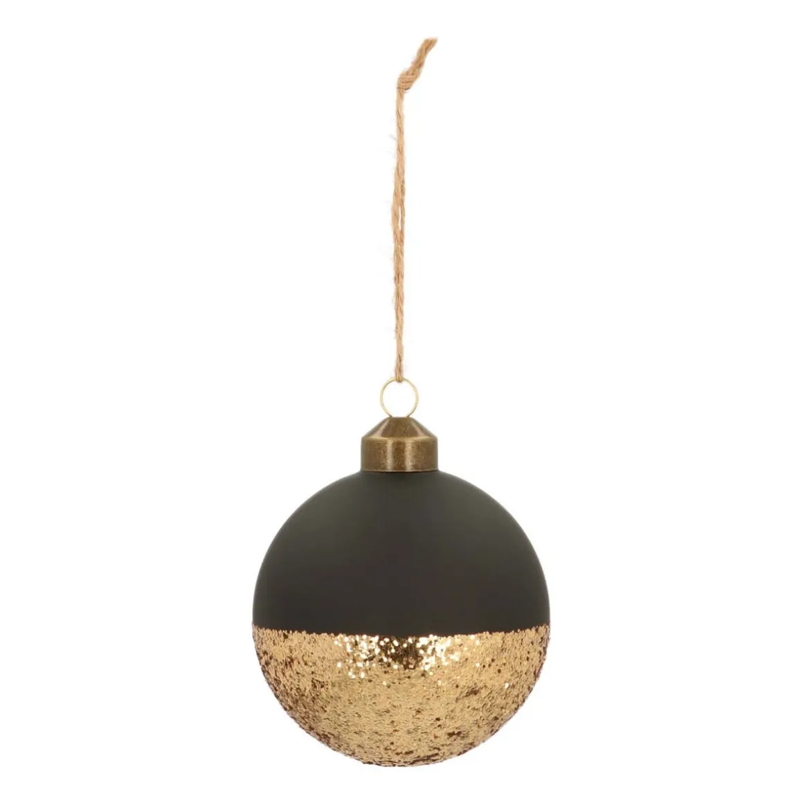 Besondere Weihnachtskugel In Glitzergold Getaucht, Schwarz, Glas, 8 Cm