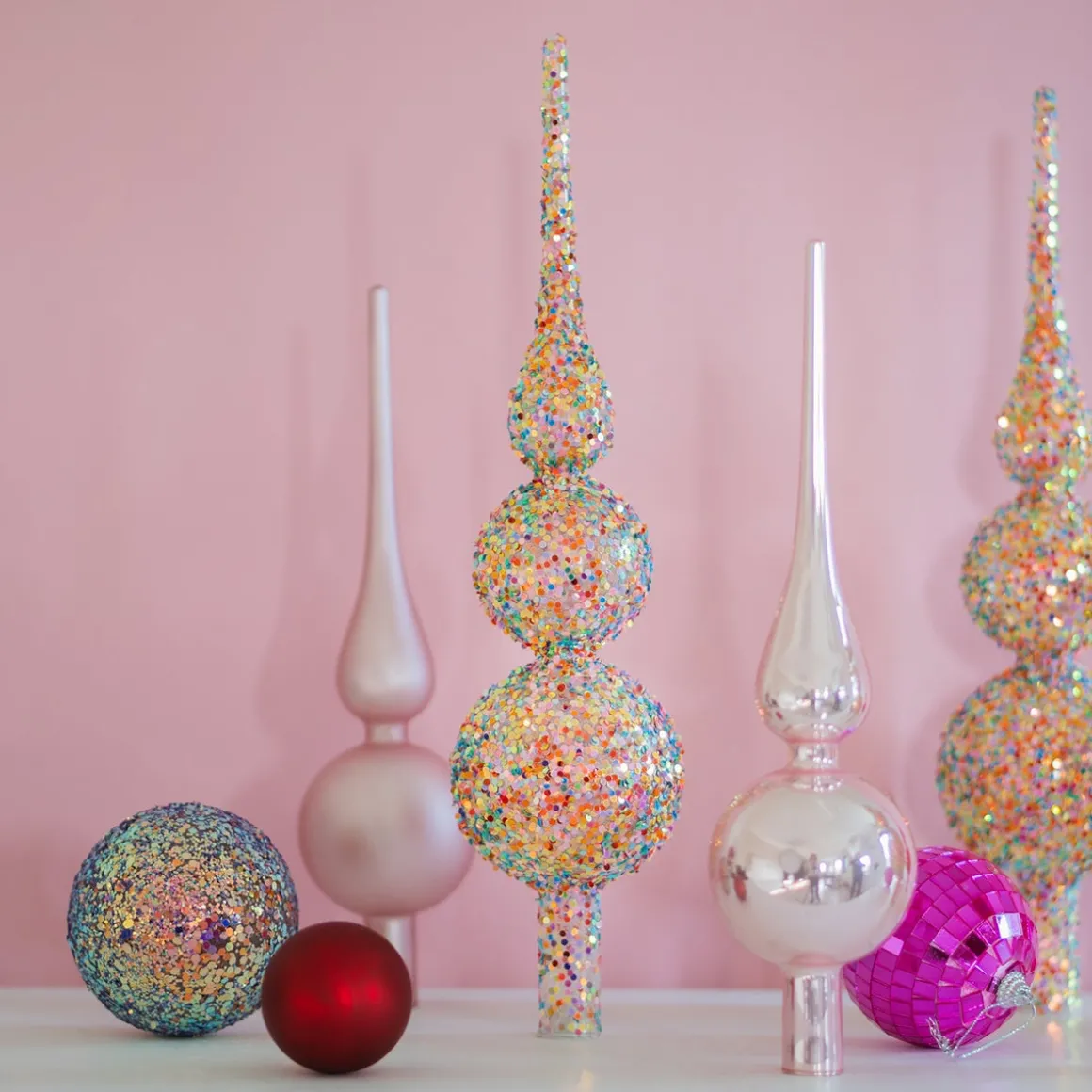 Warum sieht diese luxuriöse, funkelnde Glasbaumspitze mit mehrfarbigen Pailletten in deinem Baum so gut aus?