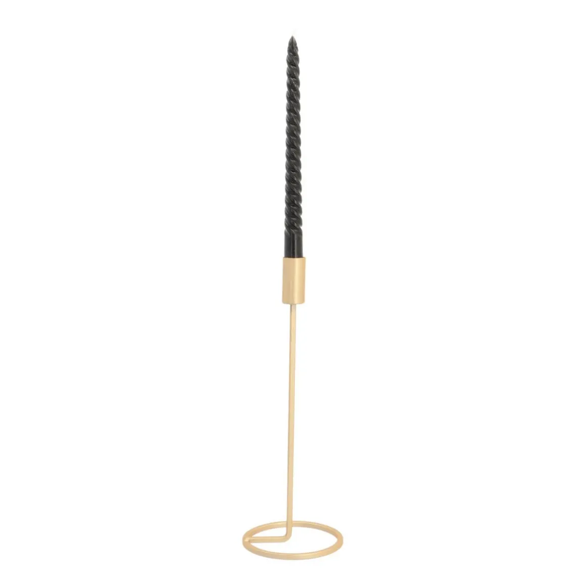 Eleganter Kerzenständer aus Metall. Mit seiner matt-goldenen Farbe und seinem modernen Design bringt er Glanz in jede Inneneinrichtung. Der Kerzenhalter ist 32 cm hoch und eignet sich für Stabkerzen mit 2 cm Durchmesser.