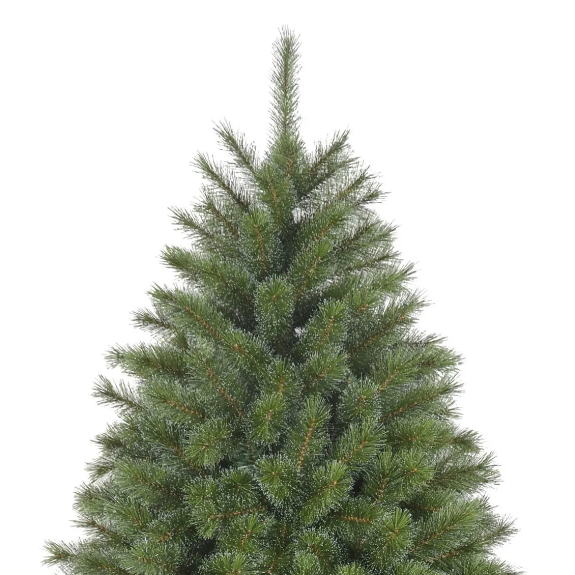Künstlicher Weihnachtsbaum in Tau-Optik. Für den realistischen Effekt von Morgentau an der Tanne sind die grünen Nadelspitzen mit speziell gefärbten Tropfen versehen. Der naturgetreue Tannenbaum aus unserer Premium-Serie Liv hat eine Größe von 215 cm. Außerdem trägt er lange Nadeln wie eine Kiefer.