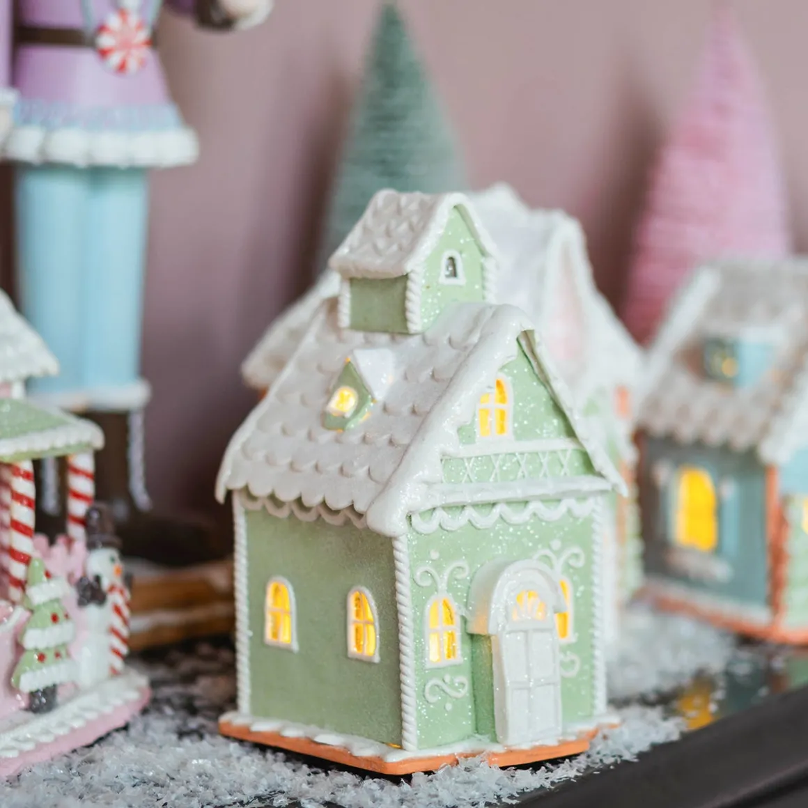 Dieses zauberhafte Lebkuchenhaus aus Modelliermasse erstrahlt in einer romantischen hellgrünen Farbe. Mit seinem typischen Lebkuchenhaus-Charme wird es im Handumdrehen eure Weihnachtsdekoration erobern und eine festliche Weihnachtsstimmung verbreiten. Mit einer Größe von 19 cm findet es einen idealen Platz auf eurer Fensterbank.