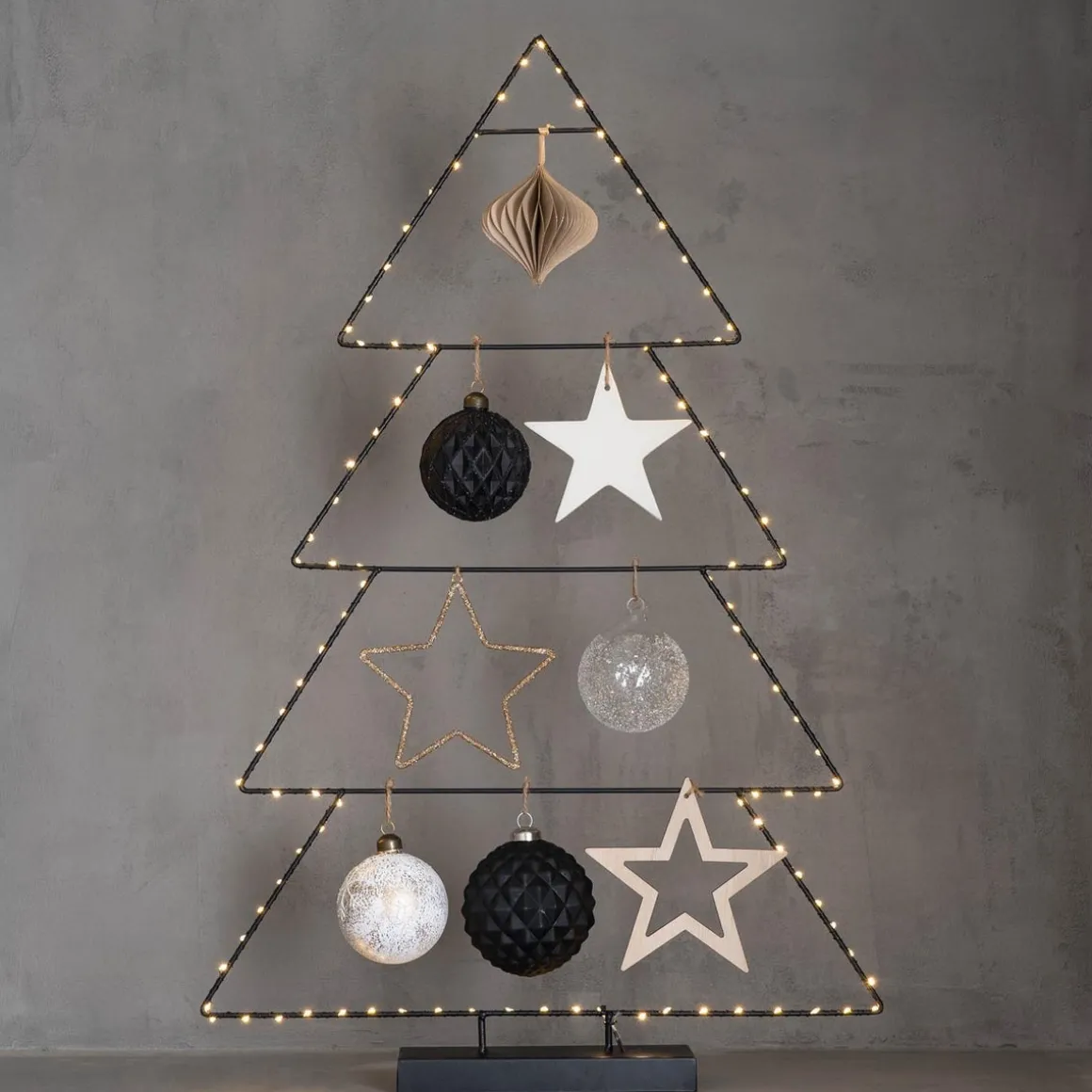 Mit seinem minimalistischen Design und der matt-schwarzen Färbung ist die Tanne selbst ein Hingucker, wenn das Licht nicht eingeschaltet ist. Allerdings zeigt er seine wahre Pracht, wenn die LEDs in den Abendstunden zu Leuchten beginnen. Sogleich entsteht eine gemütliche Atmosphäre, die auch diejenigen fesselt, die ihn von außen durchs Fenster bewundern können.