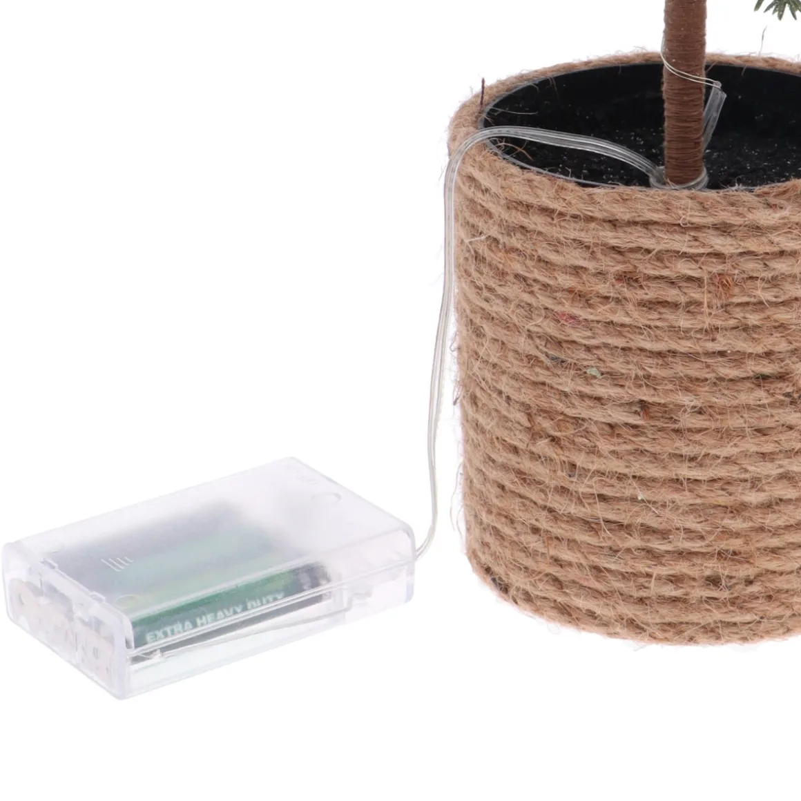 Dieses dekorative grüne Weihnachtsbäumchen ist 90 cm hoch und hat 18 elegante Zweige, die du nach Belieben dekorieren kannst. Der 10 cm breite Topf ist mit Jutegarn umwickelt und passt perfekt zu einer hellen, skandinavischen oder minimalistischen Einrichtung. Um die dünnen, schmalen Zweige ist eine LED-Lichterkette gewickelt, sodass das Bäumchen abends genauso stilvoll aussieht wie tagsüber. Stelle das Weihnachtsbäumchen einfach dort auf, wo du möchtest, denn es ist nicht von einem Kabel abhängig. Die Lichter werden mit drei AA-Batterien betrieben, die nicht im Lieferumfang enthalten sind.