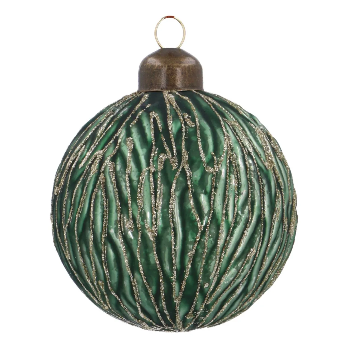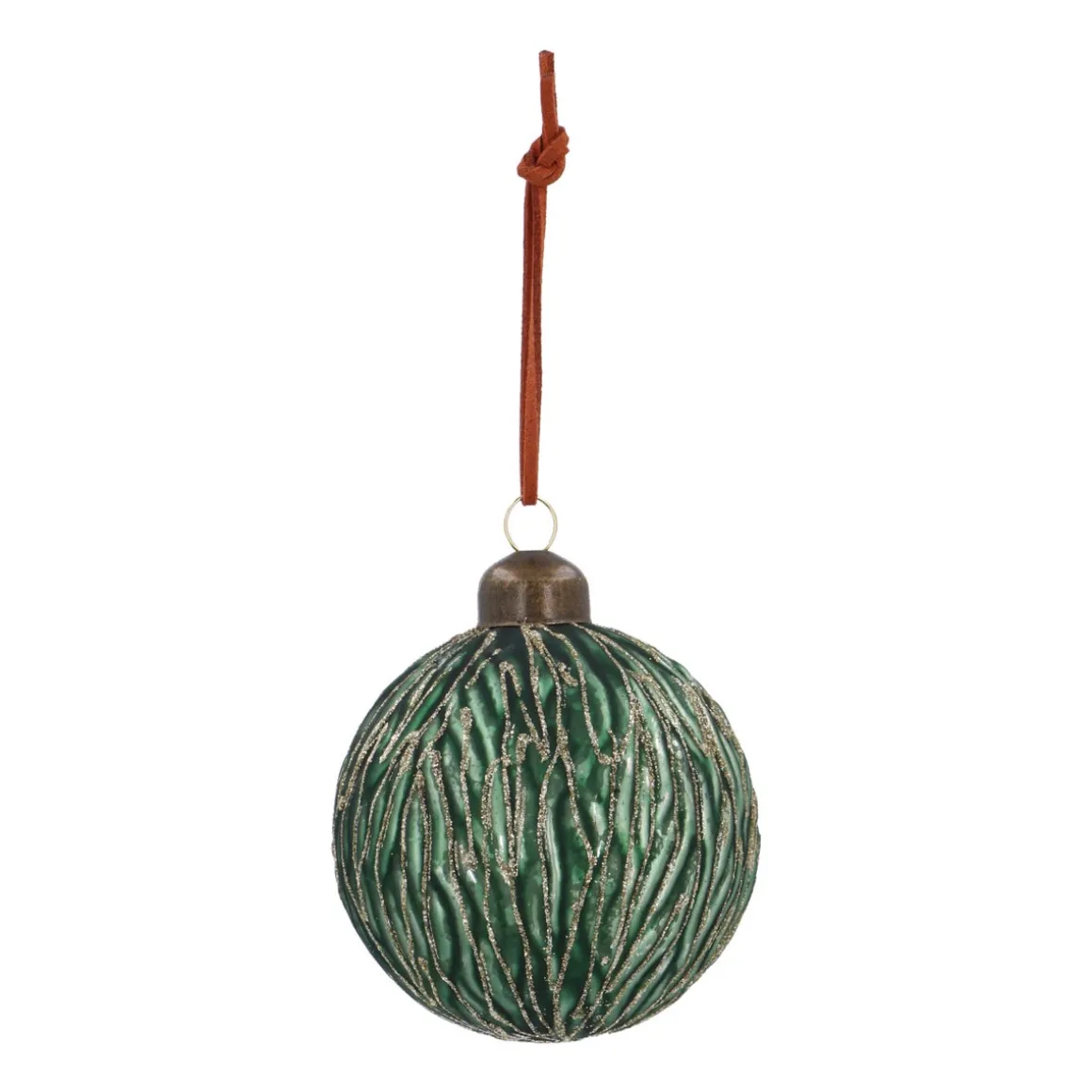 Diese wunderschöne mattgrüne Weihnachtskugel mit einem Durchmesser von 8 cm strahlt eine ruhige und stilvolle Atmosphäre aus. Die matte grüne Farbe mit subtilen, organischen Linien verleiht deinem Weihnachtsbaum eine natürliche Ausstrahlung. Das braune Lederbändchen und der verwitterte Look runden das Gesamtbild ab. Außerdem sorgt die schöne Lichtreflexion dafür, dass diese Baumkugel in jedem Weihnachtsbaum funkelt.