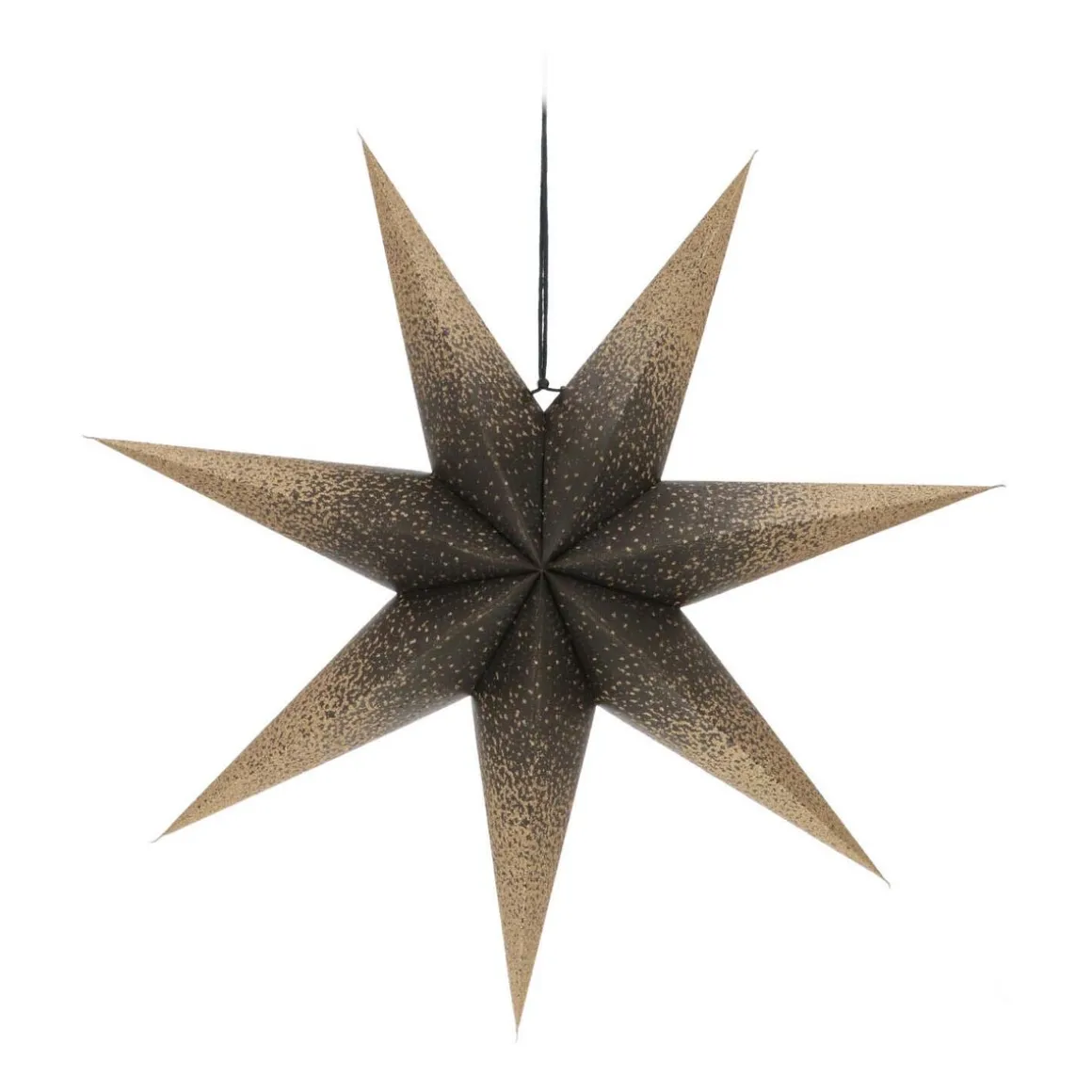 Wunderschöner Papierstern in Schwarz zur festlichen Dekoration in der Weihnachtszeit. Beleuchtet zeigt der 60 cm große 7-Zacken-Stern seine ganze Strahlkraft. Einfach eine Lampe einhängen, einschalten und schon dringt Licht durch das Transparentpapier und Lochmuster des Sterns nach außen.