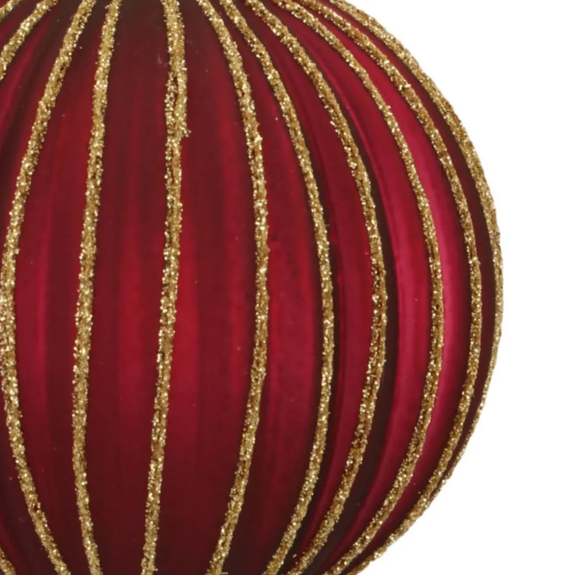Außergewöhnliche Weihnachtskugel aus Glas im Lampion-Design. Die 8 cm große Christbaumkugel hat eine matte Oberfläche in dunkler Beerenfarbe. Ein wahrer Eyecatcher am Weihnachtsbaum und hervorragend mit unseren Beerenfarben-Mix-Sets zu kombinieren.