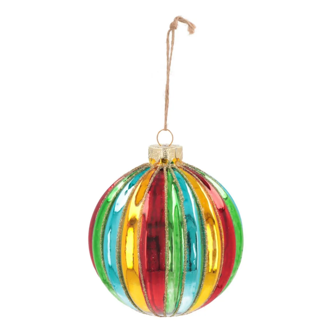 Für eine gute Atmosphäre unterm Weihnachtsbaum sorgt diese bunte Weihnachtskugel. Die aus Glas hergestellte Kugel glänzt in kräftig, bunten Farben und wird durch grazile, goldene Längsstreifen garniert. Einen besseren Eyecatcher für einen Tannenbaum mit Strahlkraft werden ihr wohl kaum finden.