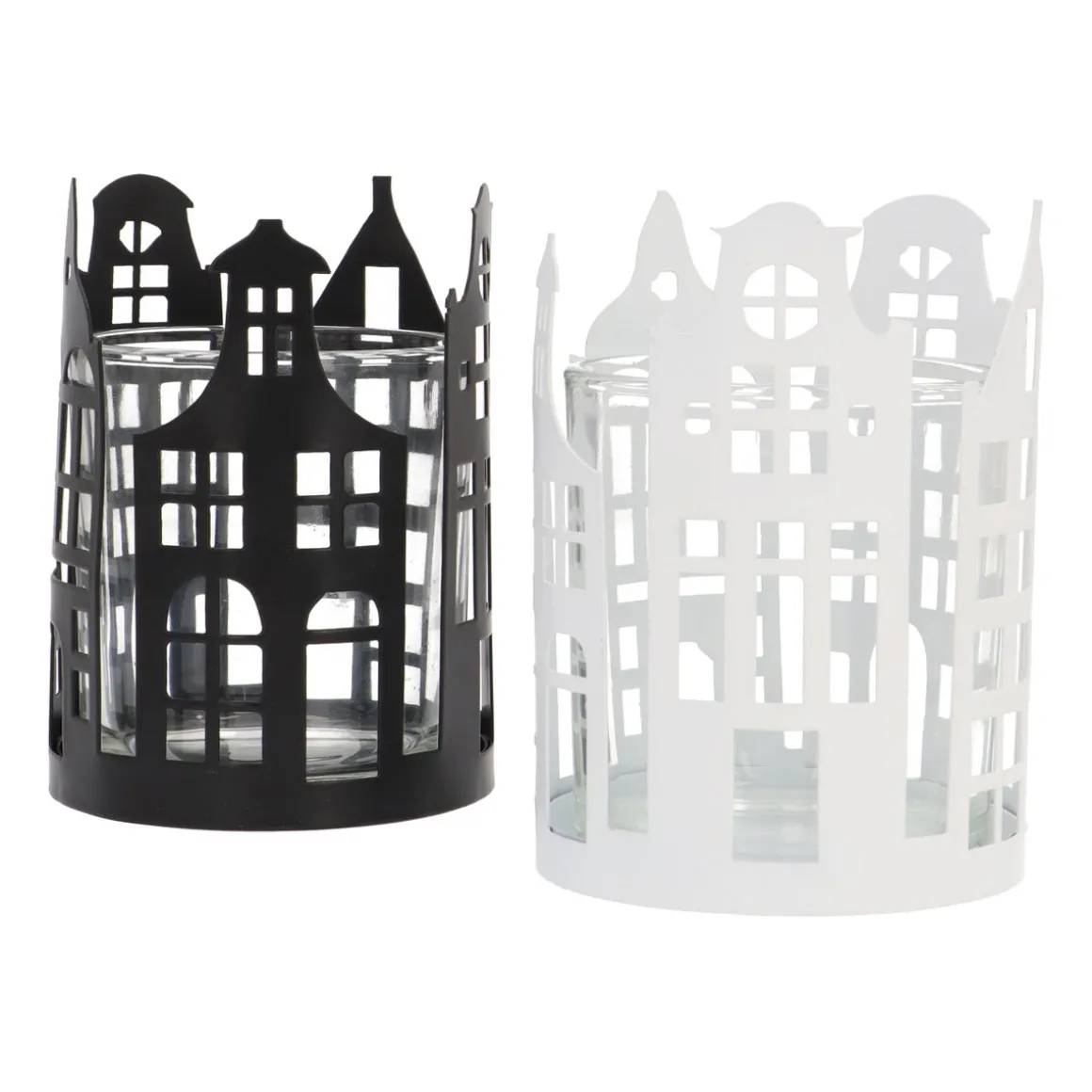 Bringe den Charme der städtischen Grachten zu dir nach Hause mit diesem stimmungsvollen runden Teelichthalter. Hergestellt aus Metall und Glas, umgeben die detaillierten Grachtenhäuser das Kerzenlicht und erzeugen ein wunderschönes Schattenspiel, wenn die Kerze brennt. Mit einem Durchmesser von 7,5 cm ist dieser Teelichthalter perfekt für eine gemütliche Ecke auf der Fensterbank, dem Tisch oder dem Kamin.