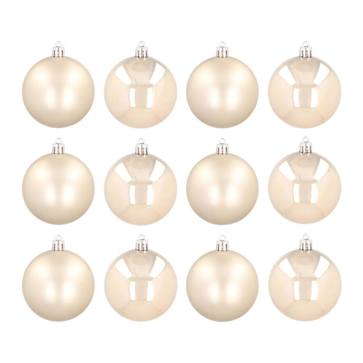 12 Weihnachtskugeln Champagner, Aus Kunststoff, 7 Cm