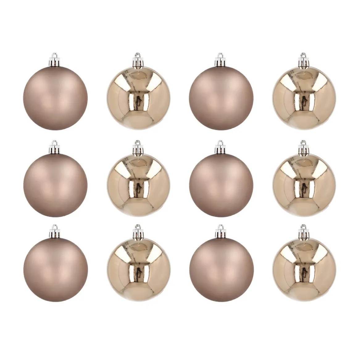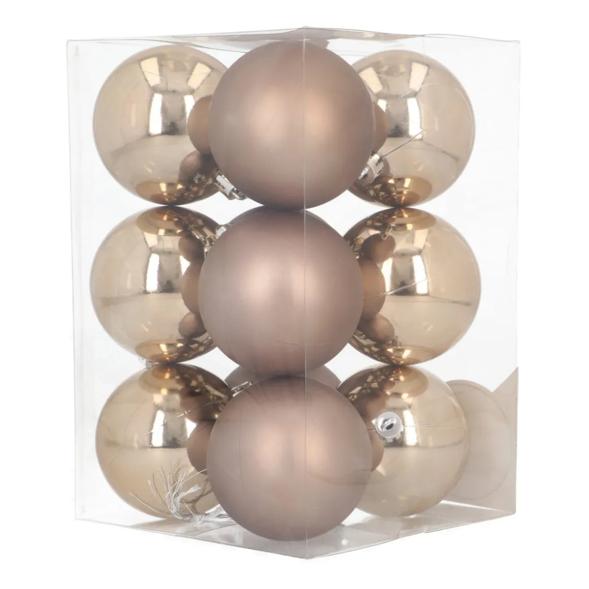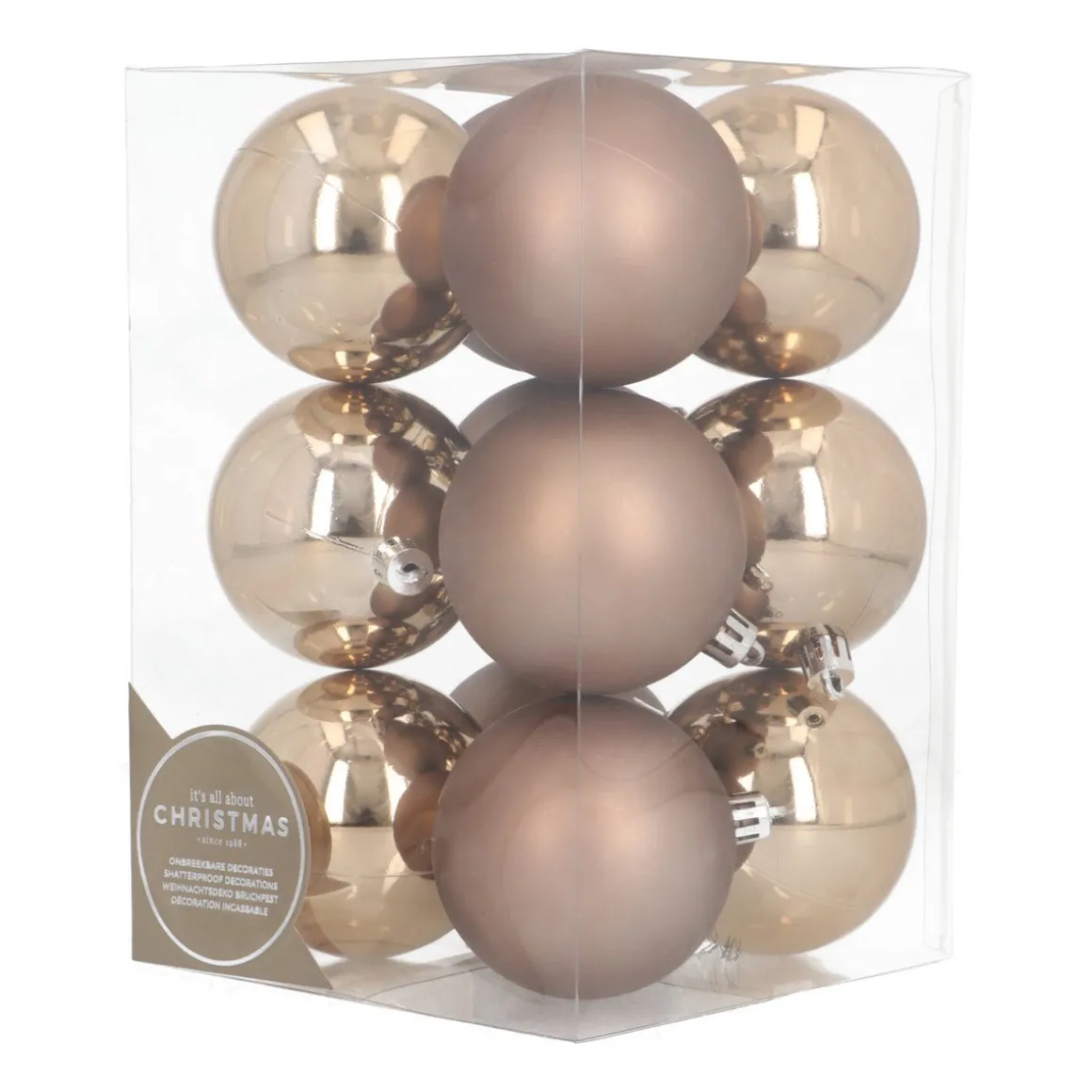 12 Weihnachtskugeln Taupe, Aus Kunststoff, 7 Cm