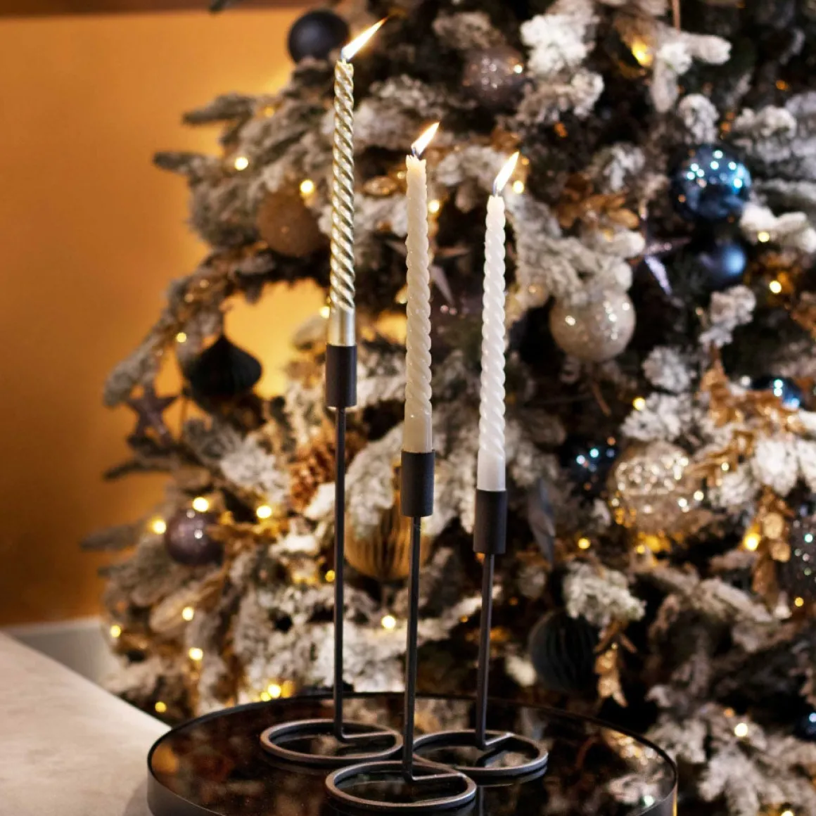 Gedrehte Kerzen in einem schicken Kerzenständer auf der Weihnachtstafel oder dem Kaminsims bringen Eleganz in die Weihnachtsdeko. Die Kerzen, die auch als Spiralkerzen oder unter dem englischen Begriff Twisted Candles bekannt sind, sind außerdem ein wundervoller Eyecatcher für einen modernen Adventskranz. Praktischerweise habt ihr mit diesem 4er Set gleich alle 4 Kerzen für den Advent beisammen.