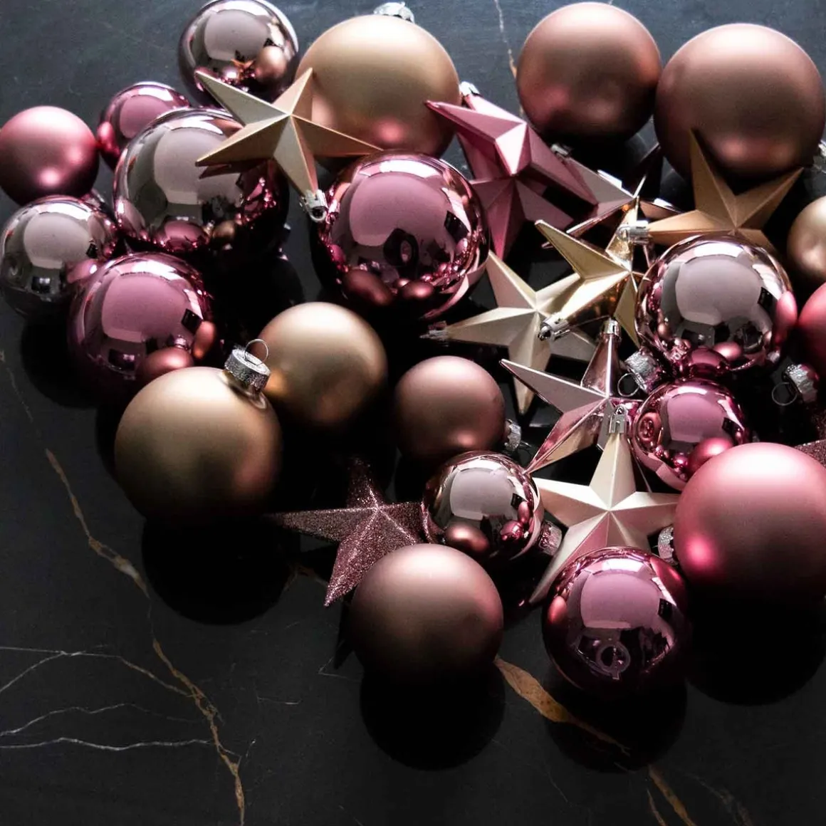 Taupefarbene und rosa Weihnachtskugeln gehören zu den beliebtesten im Sortiment von It’s all about Christmas. Der Grund, warum beide in einem Set zusammenfinden, ist jedoch schlicht und einfach: Rosa und Taupe harmonieren wunderbar! Am Weihnachtsbaum und in der Weihnachtsdeko ist diese Farbkombination ein wahrer Blickfang, der zudem eine gemütliche Atmosphäre erzeugt.
