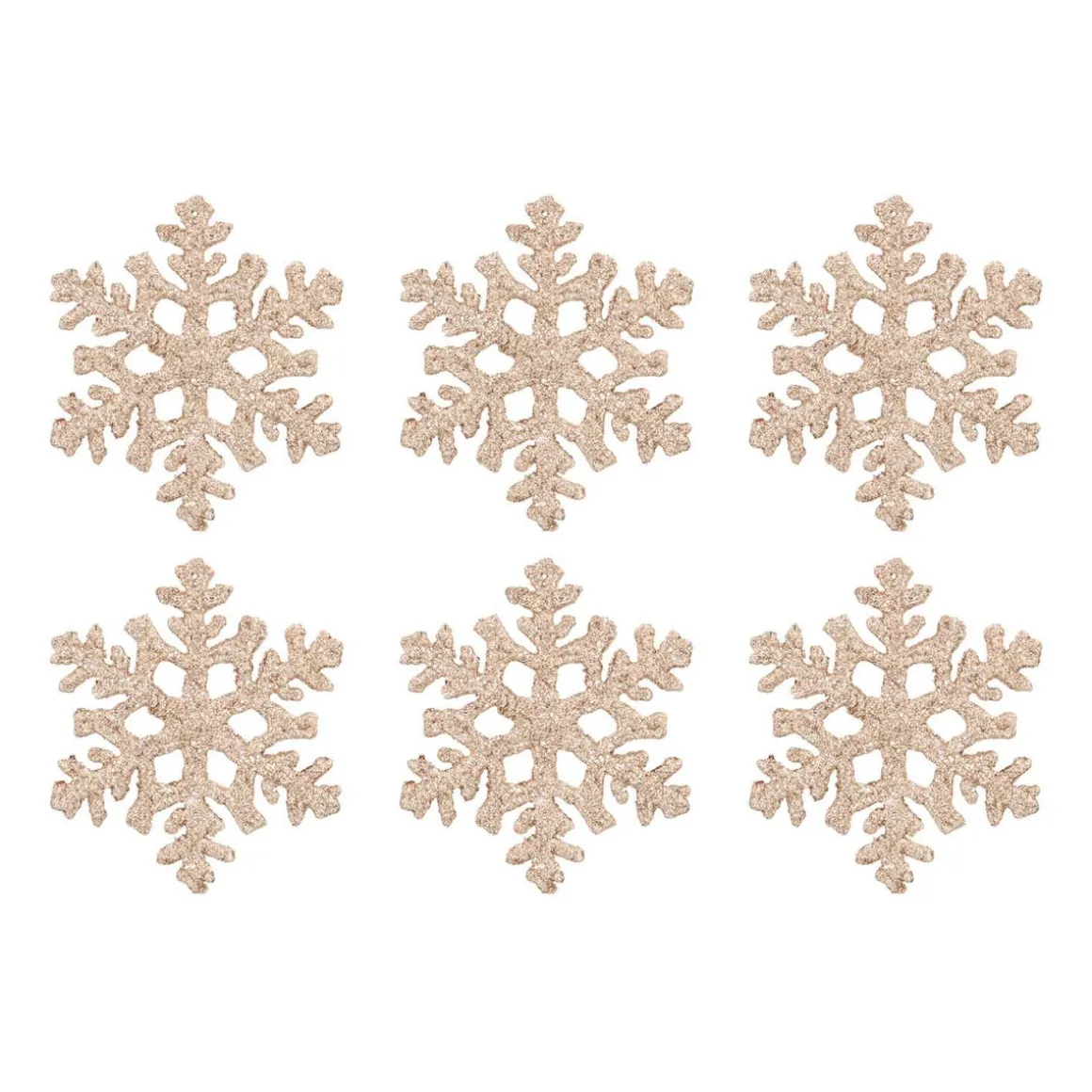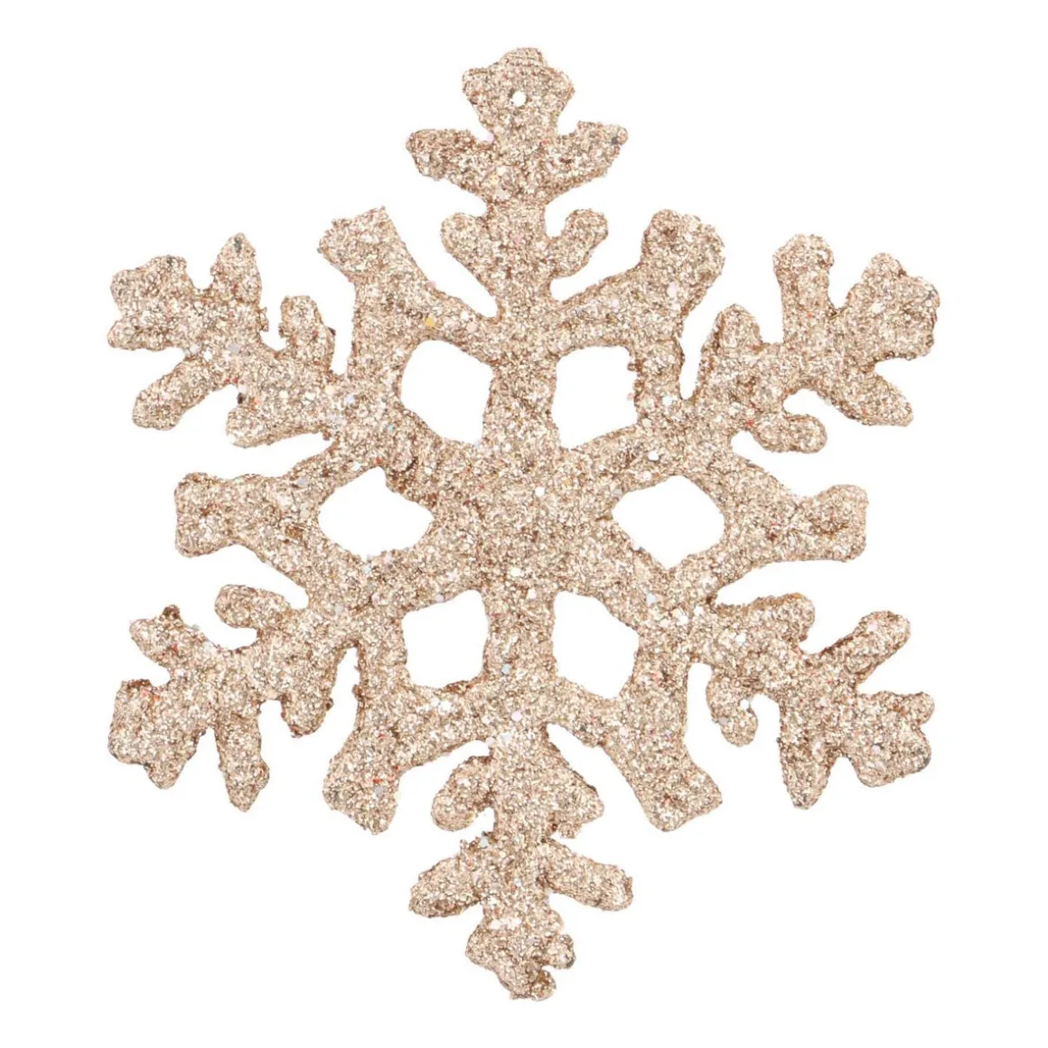 6 Glitzer Schneeflocken Champagner, Aus Kunststoff, 10 Cm