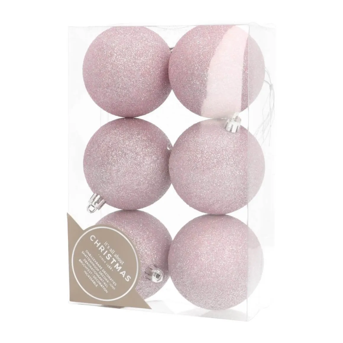 Zartrosa Christbaumkugeln im praktischen 6er Set. Die Kugeln haben einen Durchmesser von 7 cm und sind in einer wiederverwendbaren Plastikbox verpackt. Sie lassen sich außerdem einfach mit anderen Farben und Größen kombinieren. Aufgrund ihrer Herstellung aus Kunststoff sind sie nahezu unzerbrechlich. Farbkategorie: Rosa.