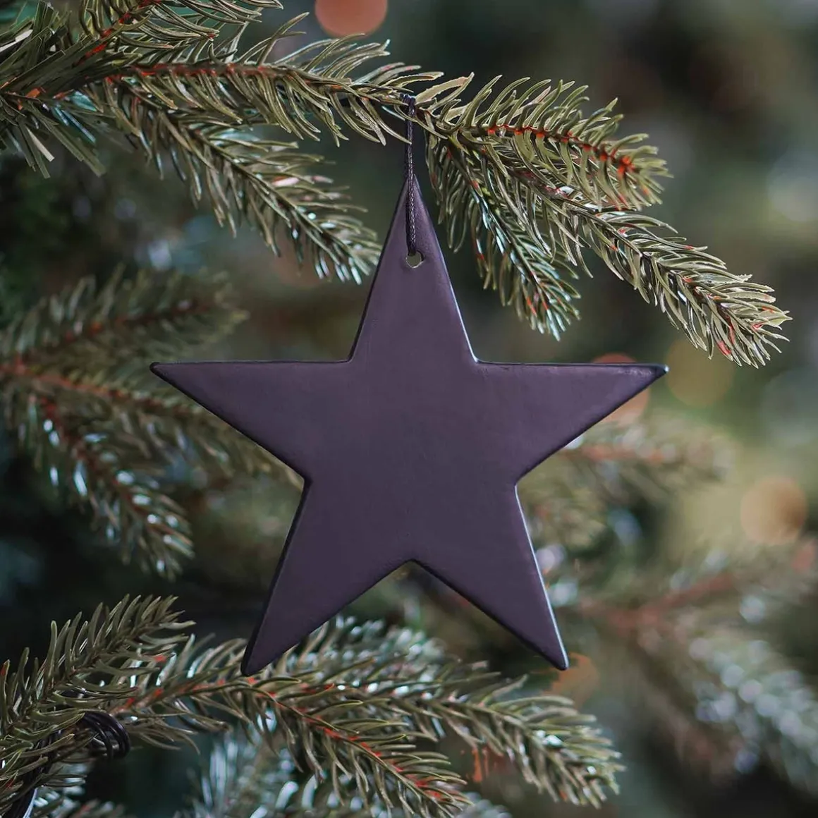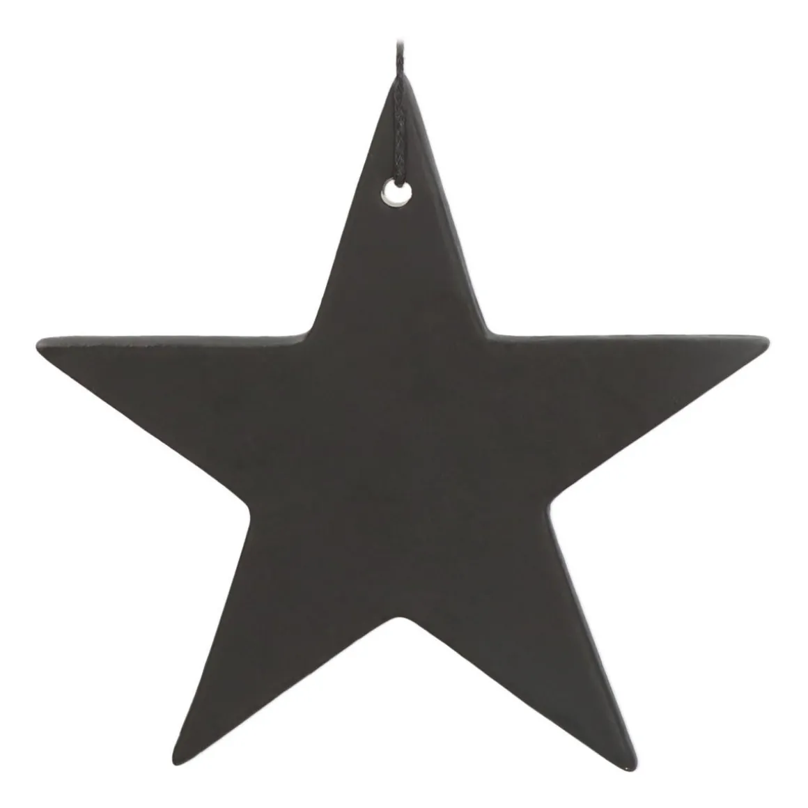 Minimalistischer Christbaumschmuck aus Porzellan. Der schwarze Stern hat eine matte Oberfläche und ist rund 12 cm groß. Durch sein schlankes, elegantes Design passt er hervorragend zu schlichtem oder skandinavischem Weihnachtsbaumschmuck.