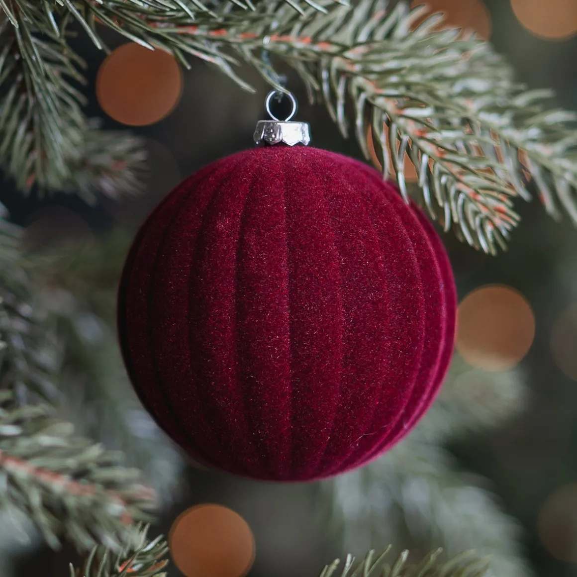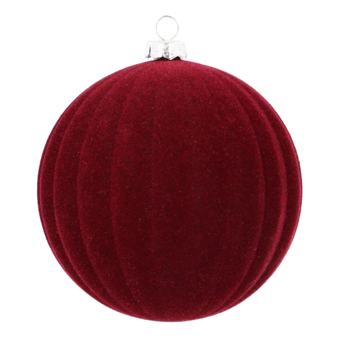 Diese rote Samt-Weihnachtskugel mit gestreiftem Relief verleiht sofort die klassische Weihnachtsatmosphäre von früher. Die Farbe und Textur fügen nämlich sofort diese warme, gemütliche Atmosphäre hinzu, die du immer rund um die Feiertage suchst. Ideal für kalte Winterabende mit einer Tasse heißer Schokolade. Außerdem ist diese bordeauxrote Weihnachtskugel auch noch sehr leicht und super weich. Was will man mehr?