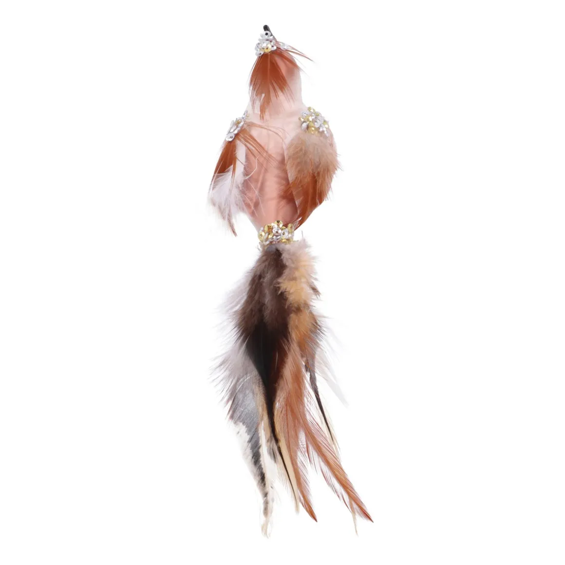 Dieser handgefertigte Vogel auf Clip besticht durch seine wunderschöne Verarbeitung. Die Flügel sind mit Pailletten verziert, und der robuste Clip macht es einfach, den braunen Vogel an einem Zweig zu befestigen. Dieser Anhänger ist perfekt für einen Weihnachtsbaum mit natürlichem Thema und bringt den Charme des Waldes ins Haus.