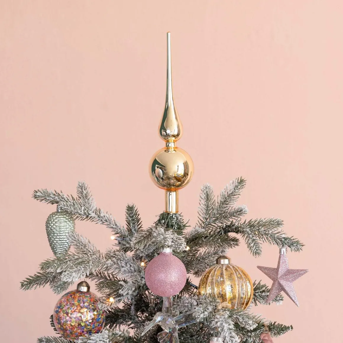 Goldene Weihnachtsbaumspitze aus Glas. Die wunderschöne Christbaumspitze ist 27 cm groß und besitzt eine glänzende Oberfläche. Ein wahrlich krönender Abschluss für den Tannenbaum!