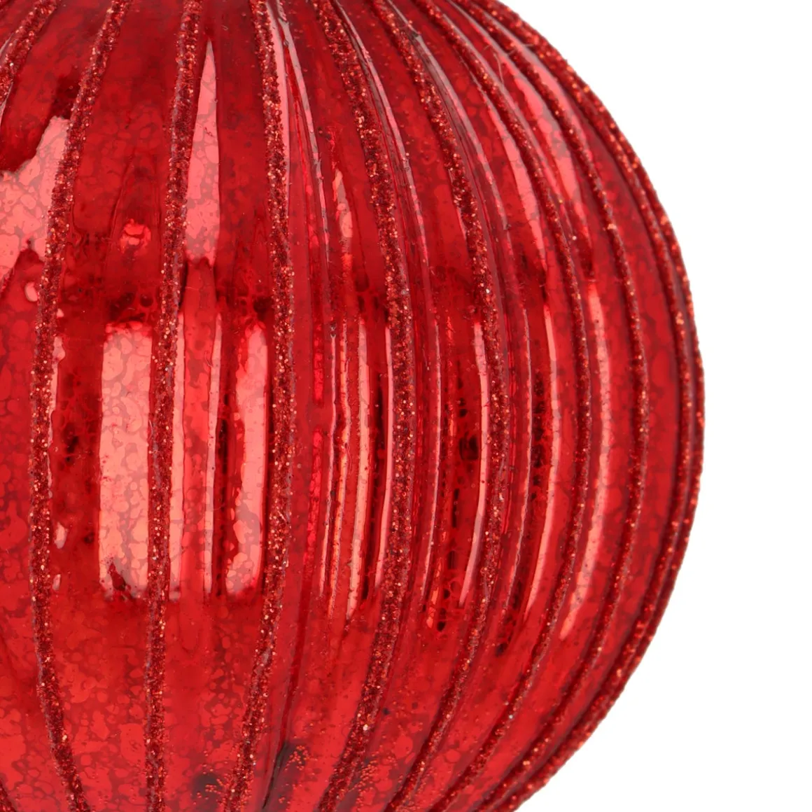 Suchst du eine Mischung aus modern und klassisch für deinen Weihnachtsbaum? Dann solltest du dir diese rote Weihnachtskugel aus Glas mit Craquelé-Relief unbedingt ansehen!