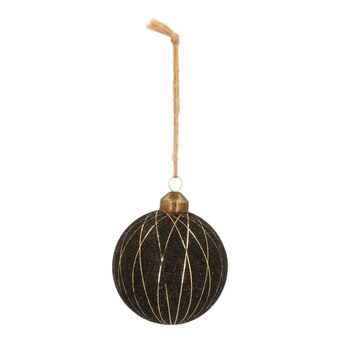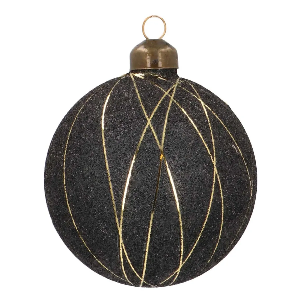 Edle Weihnachtskugel Mit Eleganten Streifen, Schwarz, Glas, 8 Cm