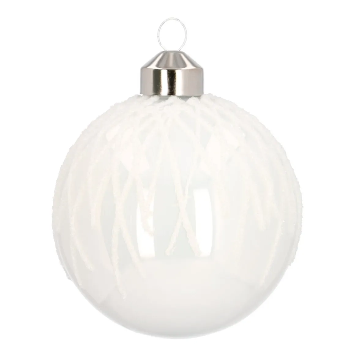 Sehr edle und dekorative Weihnachtskugel aus Glas mit Nadelstreifenmuster in Weiß, 8 cm. Diese besondere Christbaumkugel ist handdekoriert! Durch ihr exklusives Aussehen wird sie zum Blickfang am Weihnachtsbaum.