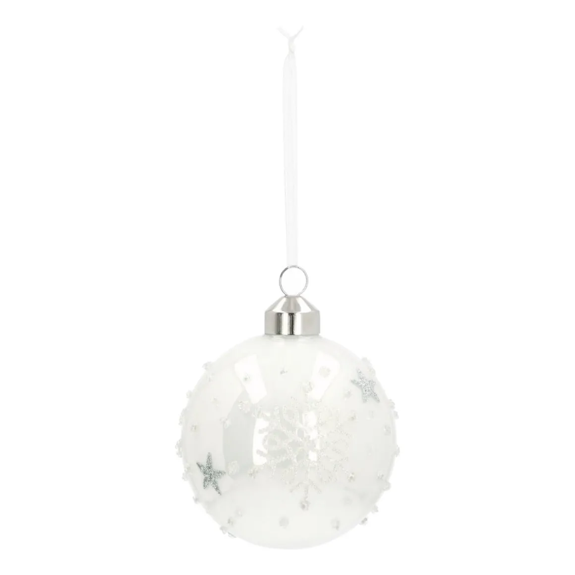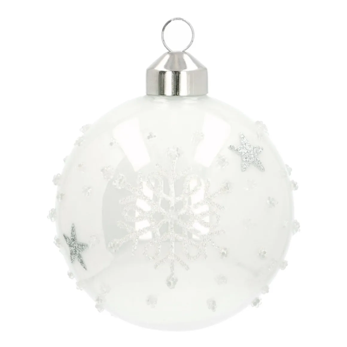 Edle Weihnachtskugel Sterne Und Schneeflocken, Weiß, Glas, 8 Cm