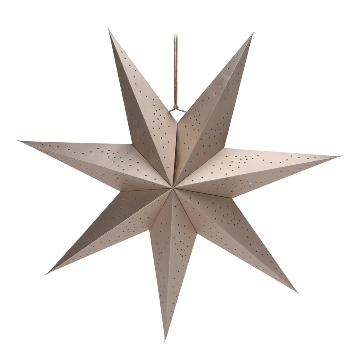 Ein strahlender Papierstern in Gold mit 60 cm Durchmesser. Dieser 7-zackige Stern lässt sich einfach entfalten und kann mit der mitgelieferten Schnur problemlos aufgehängt werden. Dank seiner Größe ist dieser goldene Stern ein echter Hingucker, perfekt für Fenster, Wände oder über dem Esstisch. Kombiniere ihn mit kleineren Sternen von 45 cm oder Sternen in anderen Farben wie Weiß oder Champagner für ein spielerisches und stimmungsvolles Gesamtbild.