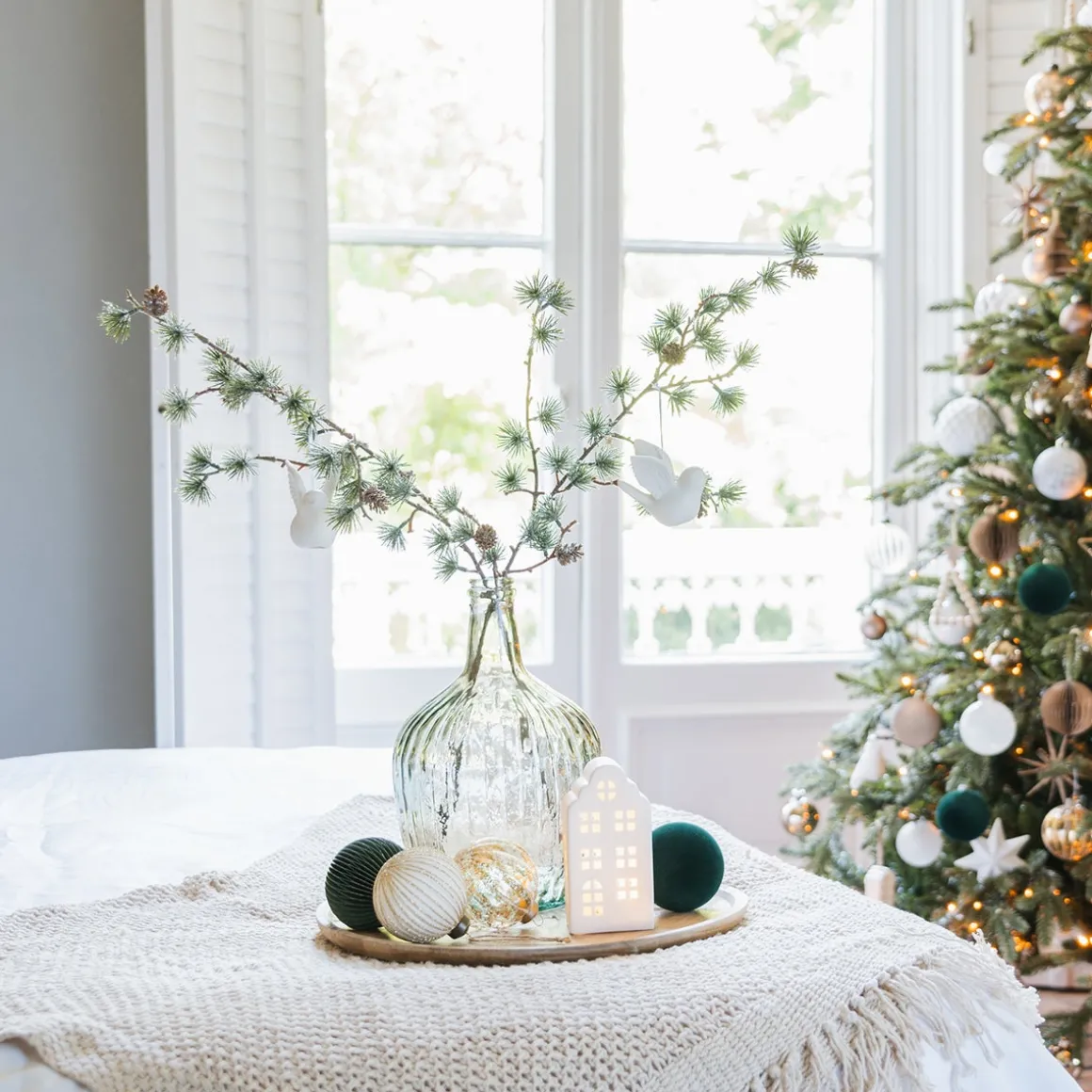 Dekoriere diesen grünen Tannenzweig ganz nach deinem Geschmack! Inspirationstipp: Wir finden, dass dieser grüne Zweig hervorragend zu Braun, Weiß und Taupe passt. Hänge verschiedene Papier-Weihnachtsanhänger in diesen hellen Farben an die Zweige. Wickel zusätzliche Lichterketten um den Tannenzweig für einen extra festlichen Winterlook. Was bevorzugst du?