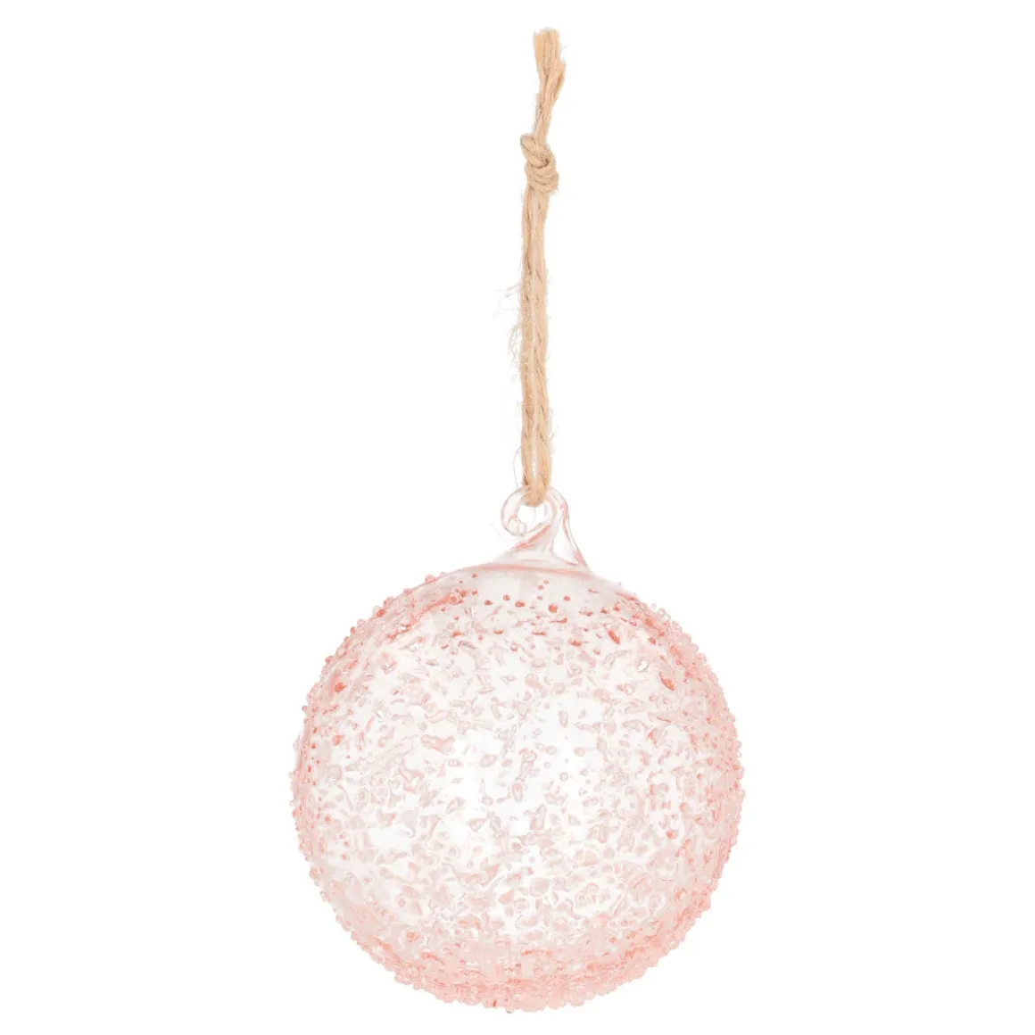 Die rosa transparente Kugel ist aus einem Stück Glas geblasen. Dadurch hat dieses stimmungsvolle Weihnachtsornament keine Metallteile, sondern eine elegante Glasöse. Das Aufhängen erfolgt mit einem Juteband, sodass du auch keine Weihnachtskugelhaken benötigst. Diese glitzernde Weihnachtskugel in Pastellrosa ist ideal, um eine romantische und verträumte Weihnachtsstimmung in deinem Zuhause zu schaffen. Die Glimmersprenkel fangen nämlich das Licht ein und lassen die Weihnachtskugel extra funkeln!