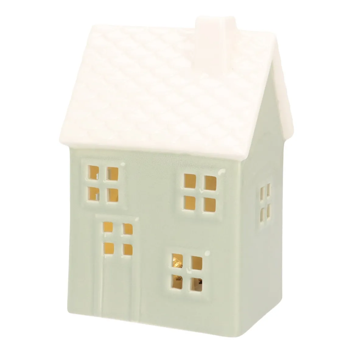 Bring eine frische und moderne Weihnachtsstimmung in dein Zuhause mit diesem hellgrünen Porzellanhäuschen! Mit seinem sanften Grünton und minimalistischen Design passt es perfekt in deine Einrichtung. Die feinen Details wie die beleuchteten Fenster, der charmante Schornstein und das elegante Dach machen dieses 15 cm hohe Grachtenhaus ideal für die Festtage. Das glänzende Porzellan verleiht einen festlichen Akzent, während die eingebauten LED-Lämpchen (inklusive Batterien) für eine warme, einladende Atmosphäre sorgen.