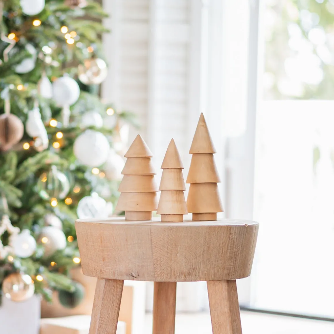 Dieses skandinavische Holz-Weihnachtsbäumchen strahlt Einfachheit aus! Minimalistisch, robust und doch gemütlich. Besonders, wenn du es mit anderer Weihnachtsdeko kombinierst. Lege einen grünen Tannenzweig daneben oder platziere es zwischen anderen Elementen wie einer unserer Kerzen in Tannenbaumform oder weiteren Mini-Bäumchen. So schaffst du ganz einfach ein schönes Weihnachtsarrangement. Stelle die Bäumchen auf ein Tablett oder auf ein Regal.