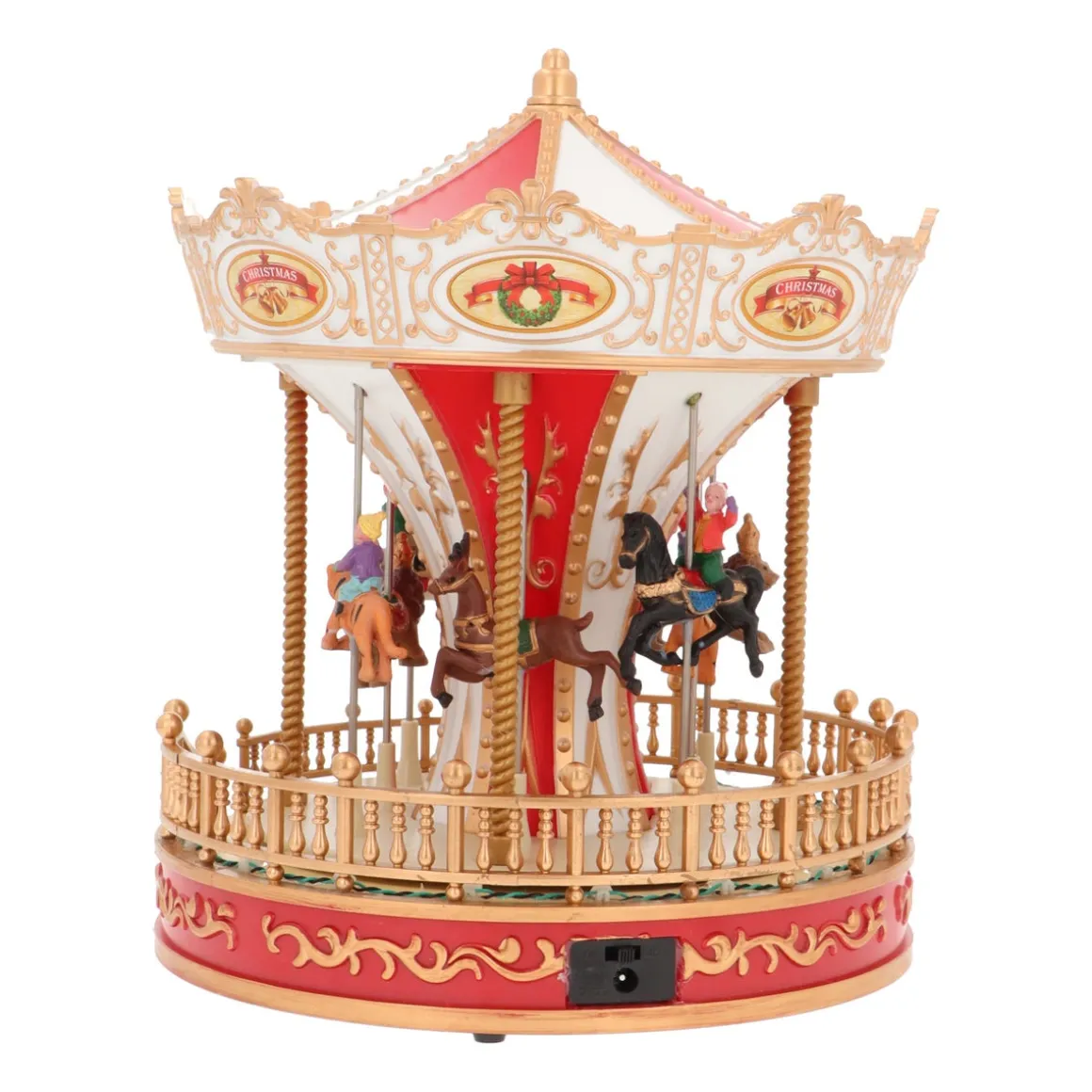 Verwandle dein Zuhause in einen gemütlichen Weihnachtsmarkt mit diesem nostalgischen Karussell! Mit seinem eleganten Jahrmarktdesign und den sich bewegenden Pferdchen versetzt es dich direkt in die Vergangenheit.