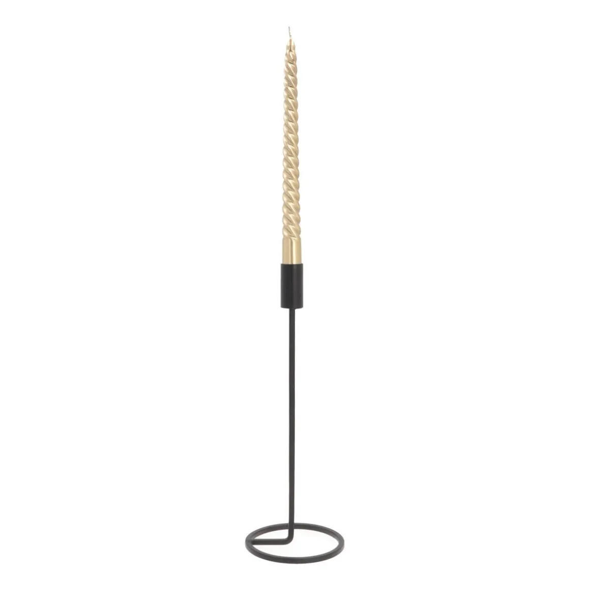 Stylisher Kerzenständer aus Metall. Mit seiner matt-schwarzen Farbe und seinem modernen Design bringt er Eleganz in jede Inneneinrichtung. Der Kerzenhalter ist 32 cm hoch und eignet sich für Stabkerzen mit 2 cm Durchmesser.