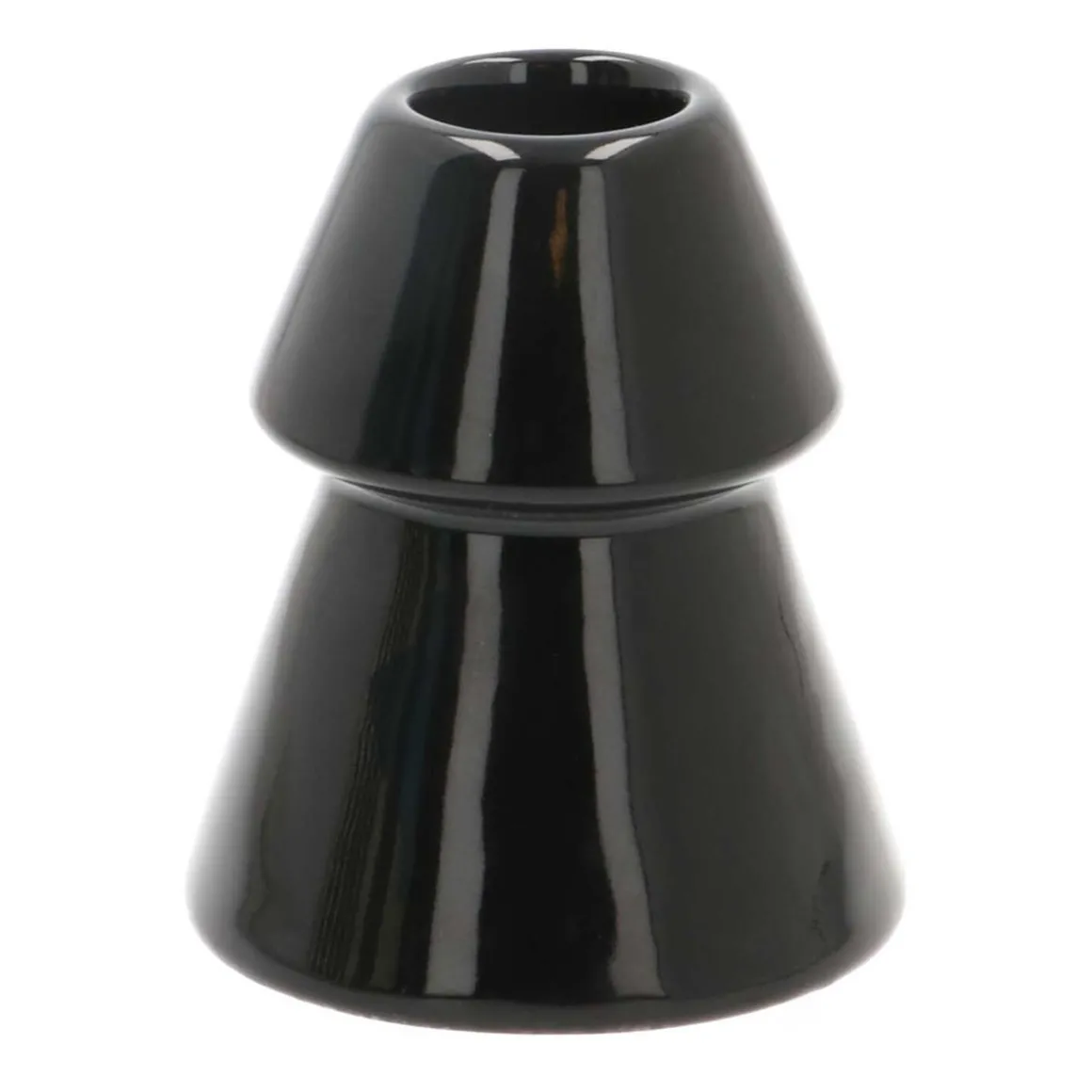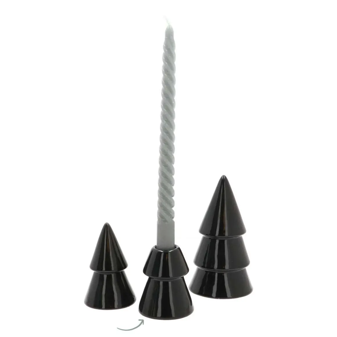 Stylisher Kerzenständer aus Porzellan, designt in der Form eines Tannenbaums. Der Kerzenhalter hat eine glänzend-schwarze Oberfläche, ist 10 cm hoch und eignet sich für Stabkerzen mit einem Durchmesser von 2 cm.