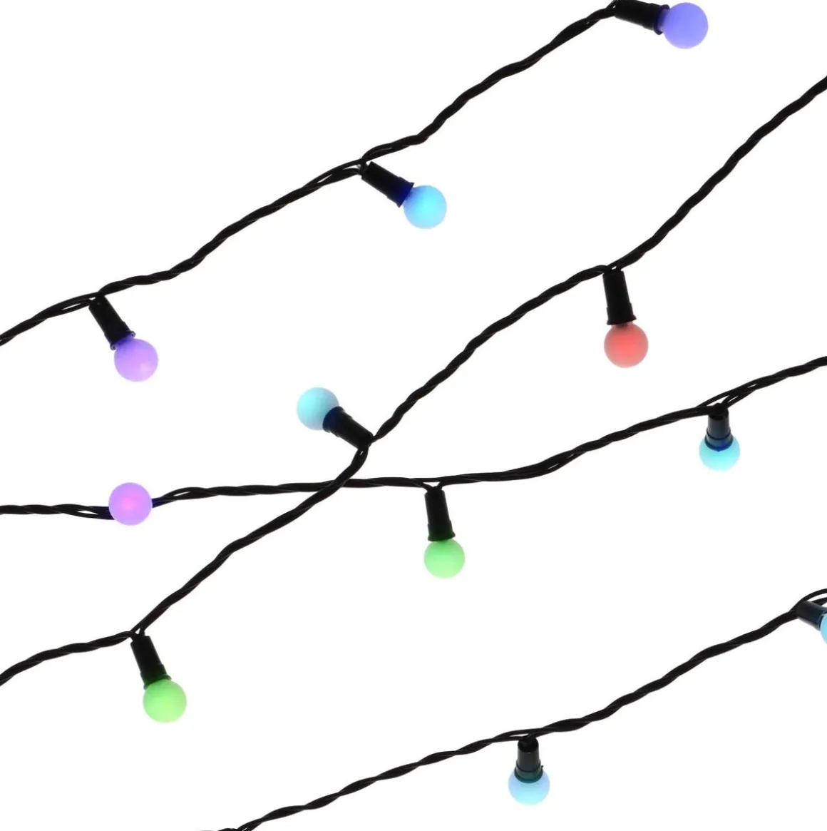 Stimmungsvolle Lichterkette mit 240 LED-Kugeln mit einem Durchmesser von jeweils 5 mm. In wechselnden, bunten Farben erstrahlen die Lichter für eine fröhliche Festatmosphäre. Die Lichterkette ist schwarz, 24 m lang und hat eine Anlaufschnur von 5 m, sodass das Kabel insgesamt 29 m misst.