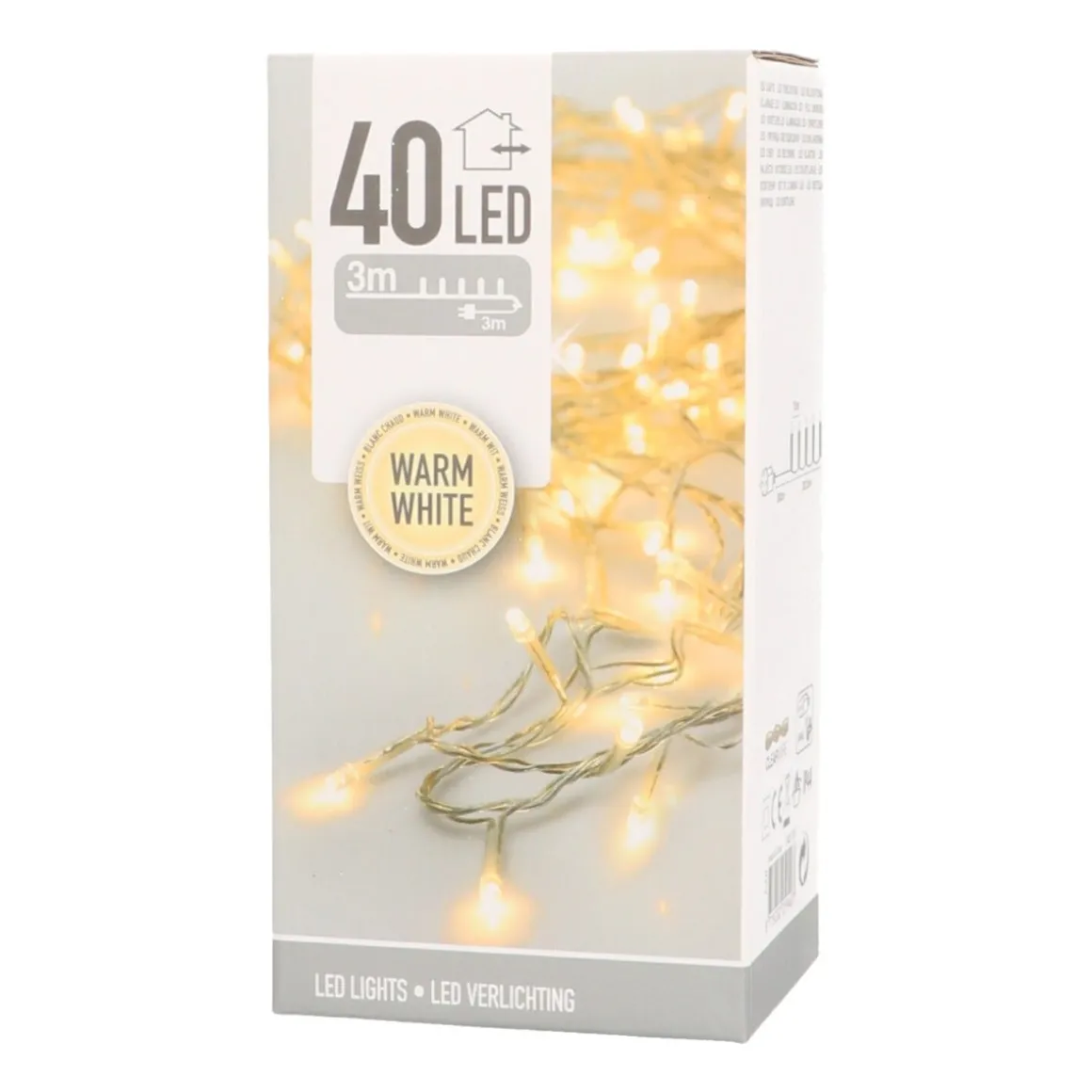 LED Lichterkette für Innen und Außen mit warmweißer Lichtfarbe. 40 LEDs sorgen für ein gemütliches Ambiente. Diese tolle Weihnachtsbeleuchtung ist ideal für Weihnachtsbäume von 50 cm.