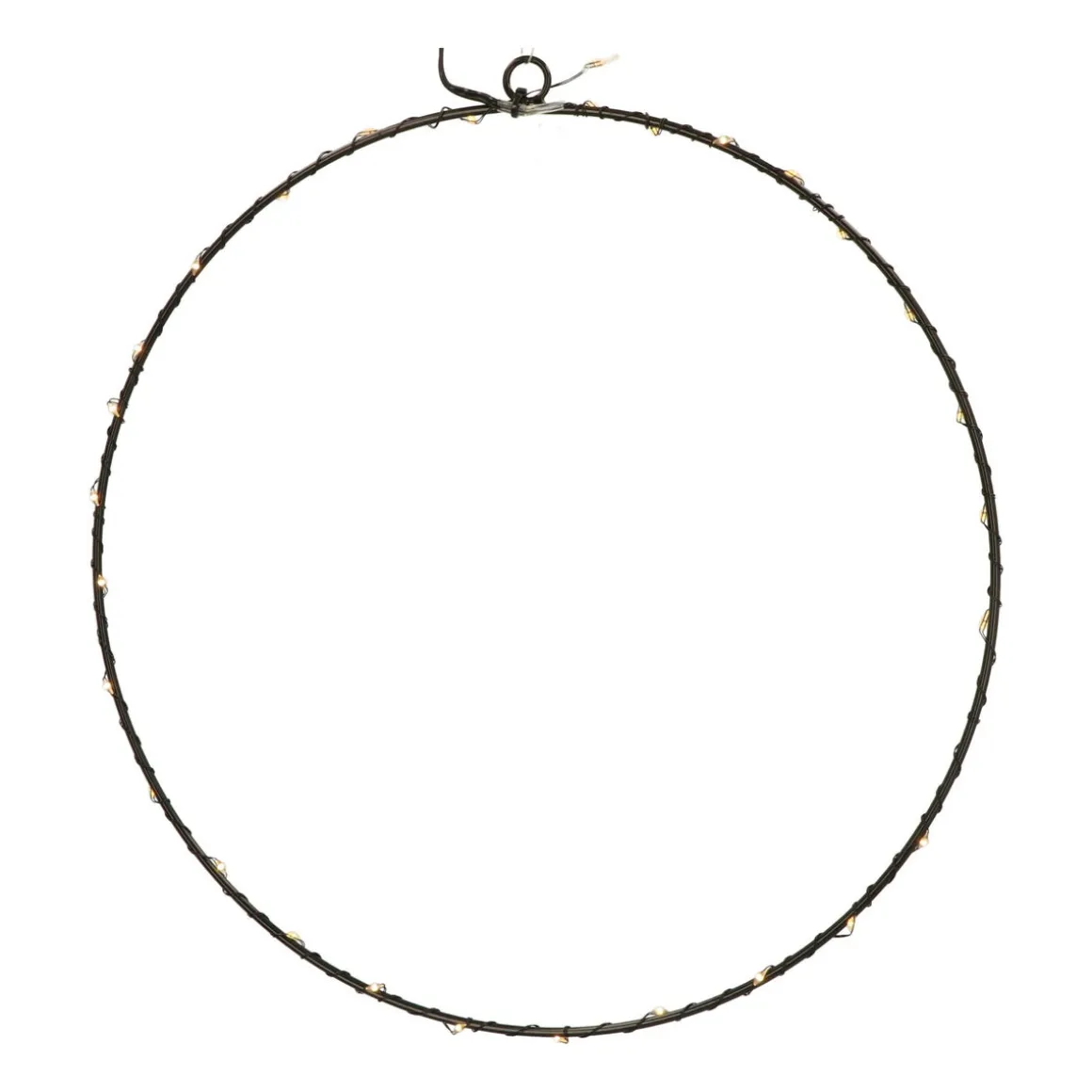 LED Ring zum Aufhängen mit warmweißer Lichtfarbe. Bei einer Größe von 30 cm ideal zur Fensterbeleuchtung. Der Ring hat einen matt-schwarzen Metallrahmen, auch der Draht der Beleuchtung ist schwarz.