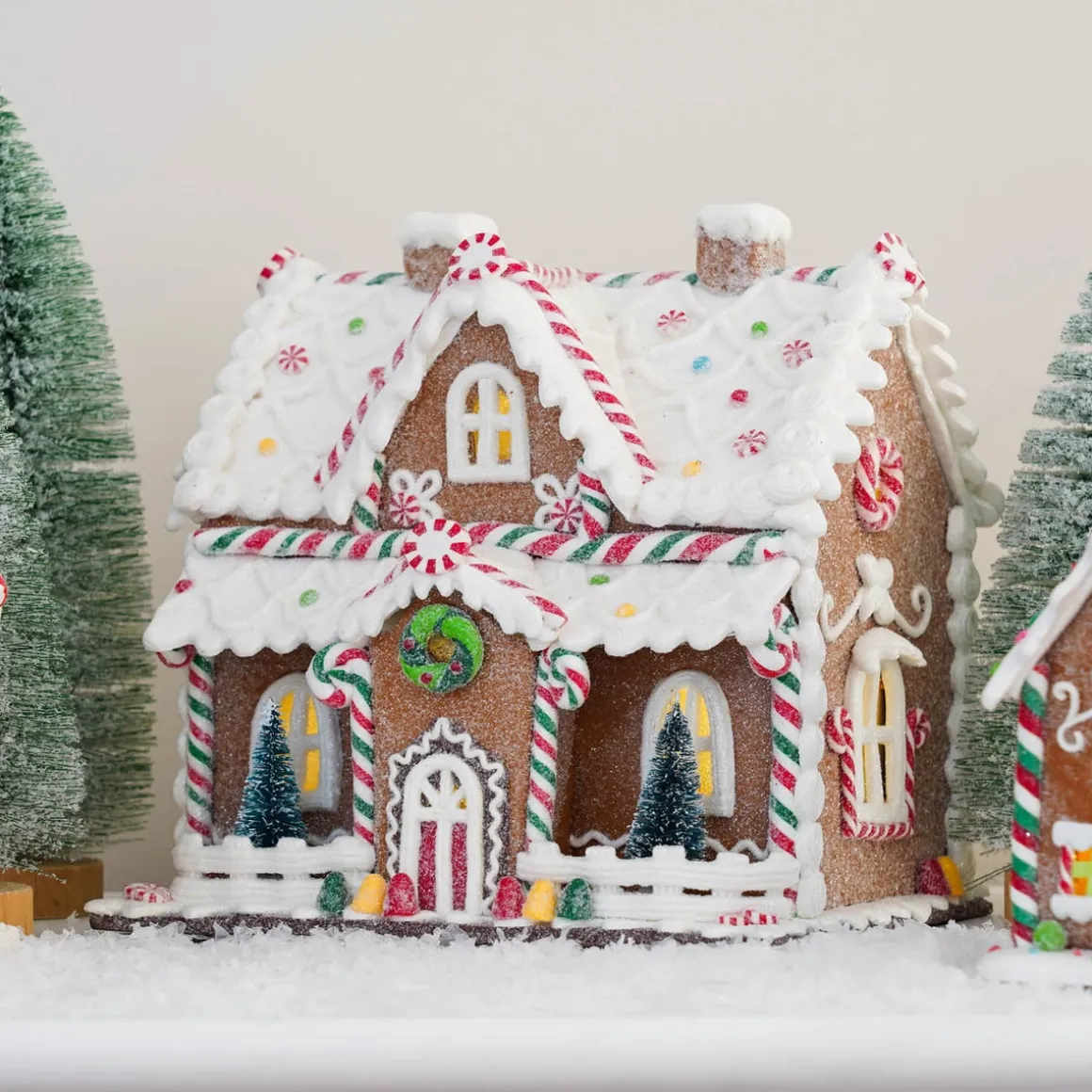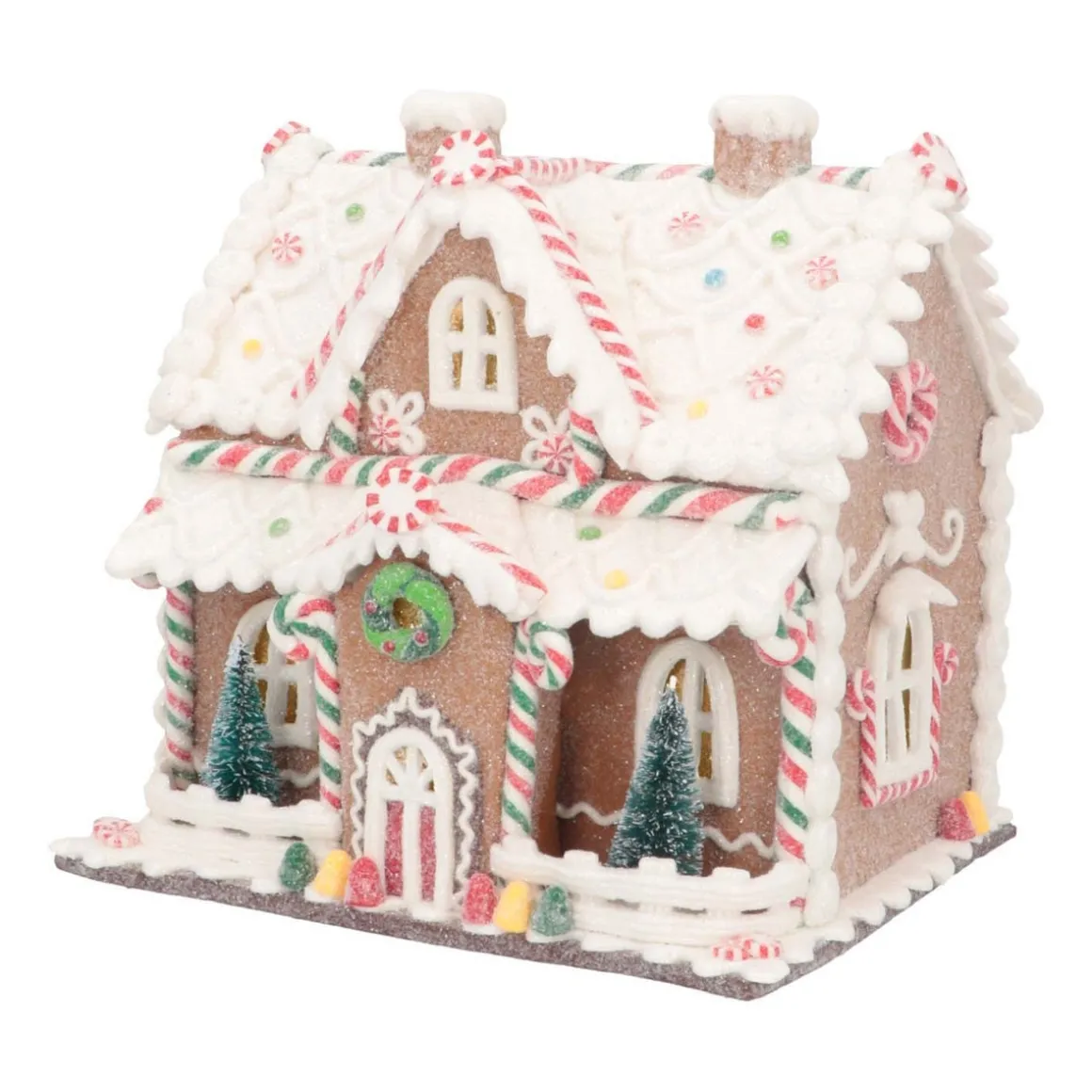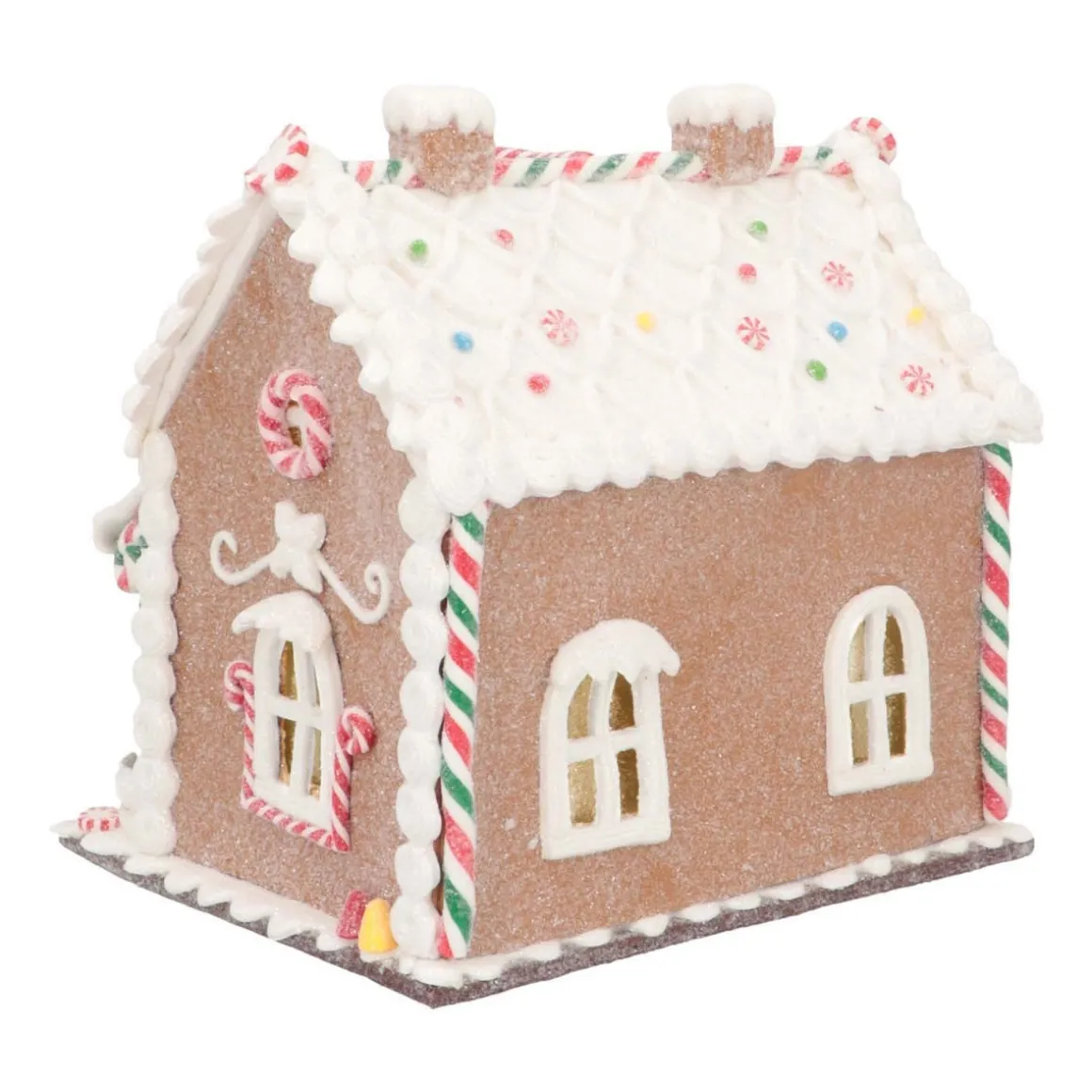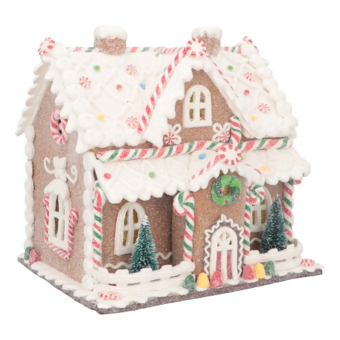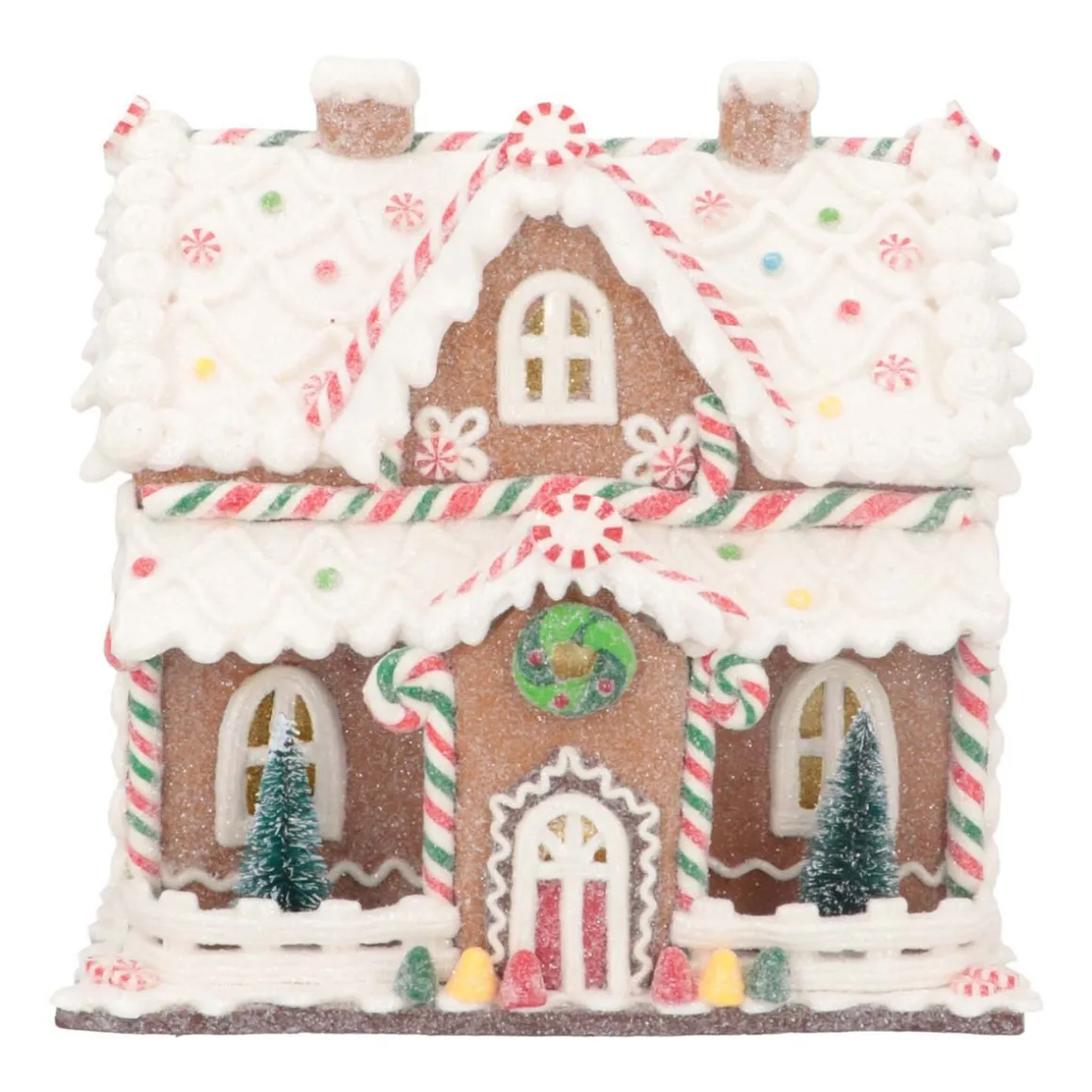 Taucht ein in eine zauberhafte Welt, in der dieses Süßigkeitenhaus in harmonischem Braun und Weiß erstrahlt. Sein unwiderstehlicher Charme verbreitet festliche Stimmung in eurem Zuhause. Das bezaubernde 21 cm große Haus mit vielen Leckereien auf dem Dach und an der Fassade ist perfekt als Blickfang auf der Fensterbank.