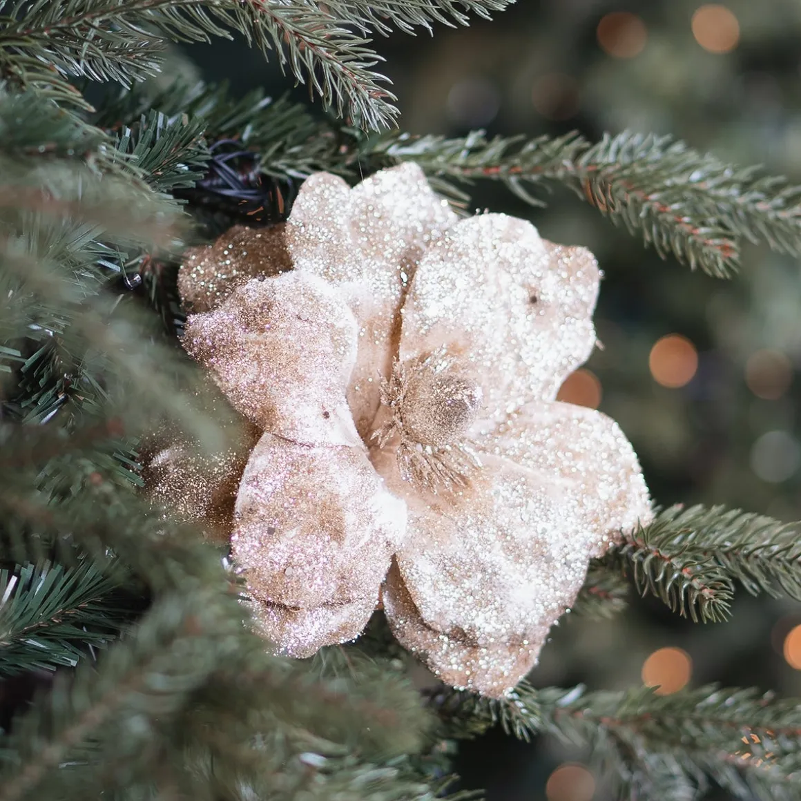 Bist du bereit, deinem Weihnachtsbaum zusätzlichen Glanz zu verleihen? Diese goldene Magnolien-Steckblume schafft das mühelos und bringt sofort eine warme, elegante Atmosphäre in dein Zuhause! Die subtilen Glitzer und das weiche Material verleihen deinem Baum ein funkelndes Makeover. Mit einer Größe von 25 cm ist diese Magnolie zwischen den Zweigen sofort sichtbar. Steckblumen sind übrigens nicht nur für den Weihnachtsbaum gedacht; sie sehen auch auf einer Kommode oder als elegantes Detail auf dem Tisch während des Weihnachtsessens wunderschön aus.