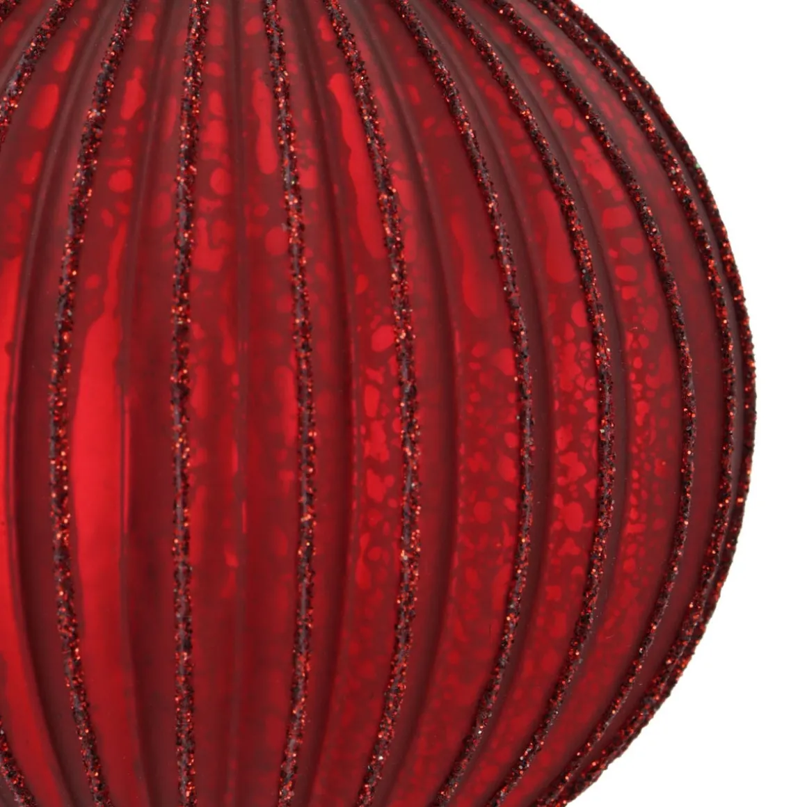 Warum solltest du diese matt-rote Craquelé-Weihnachtskugel mit Glitzerlinien unbedingt haben?