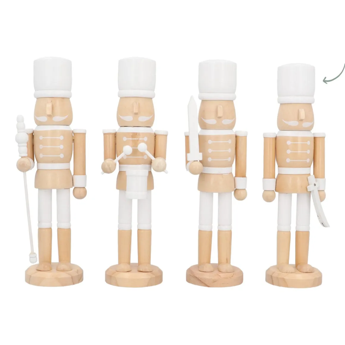 Dieser Nussknacker mit einem Schwert in der Hand ist perfekt, um deiner Weihnachtsdekoration etwas zusätzlichen Charme zu verleihen. Er ist 25 cm groß, aus robustem Kiefernholz gefertigt und in warmen Weiß- und Goldtönen gehalten. Egal, ob du ihn auf die Fensterbank, den Kamin oder einen Beistelltisch stellst, dieser Nussknacker bringt überall eine gemütliche, nostalgische Atmosphäre. Und das Beste: Es gibt verschiedene Varianten. Kombiniere ihn mit den Nussknackern mit Trommel oder Stock für eine vollständige Weihnachtsszene.