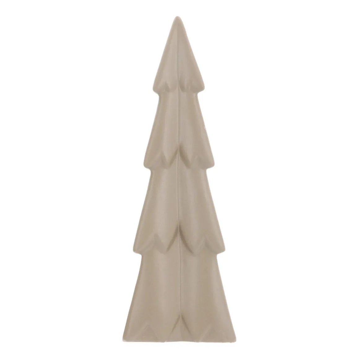 Stylisher Deko-Weihnachtsbaum aus Porzellan. Der Tannenbaum hat eine matt-taupefarbene Oberfläche und ist circa 28 cm groß. Mit seinem schlichten, modernen 3D-Design eignet er sich wunderbar zur Weihnachtsdeko auf Tisch oder Fensterbank.