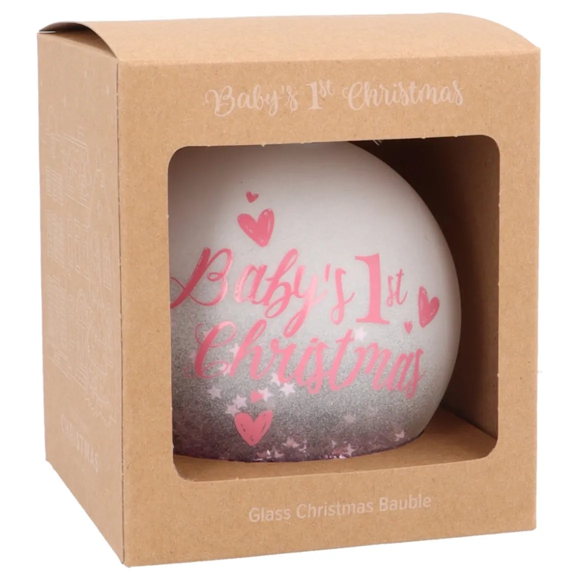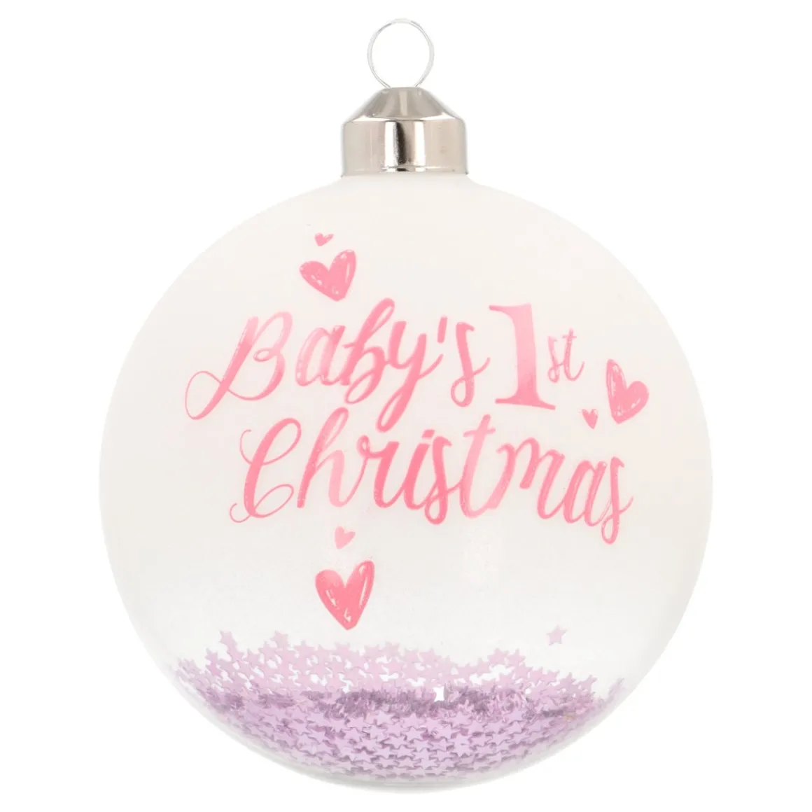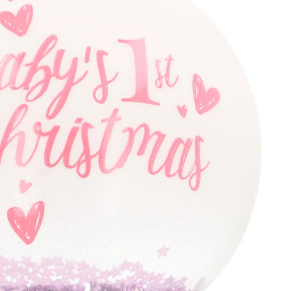 Mit Weihnachten kann man nicht früh genug anfangen! Diese extra große rosa Weihnachtskugel mit „Baby’s First Christmas“, mit einem Durchmesser von 10 cm,ist perfekt als Hommage an die Kleinsten.