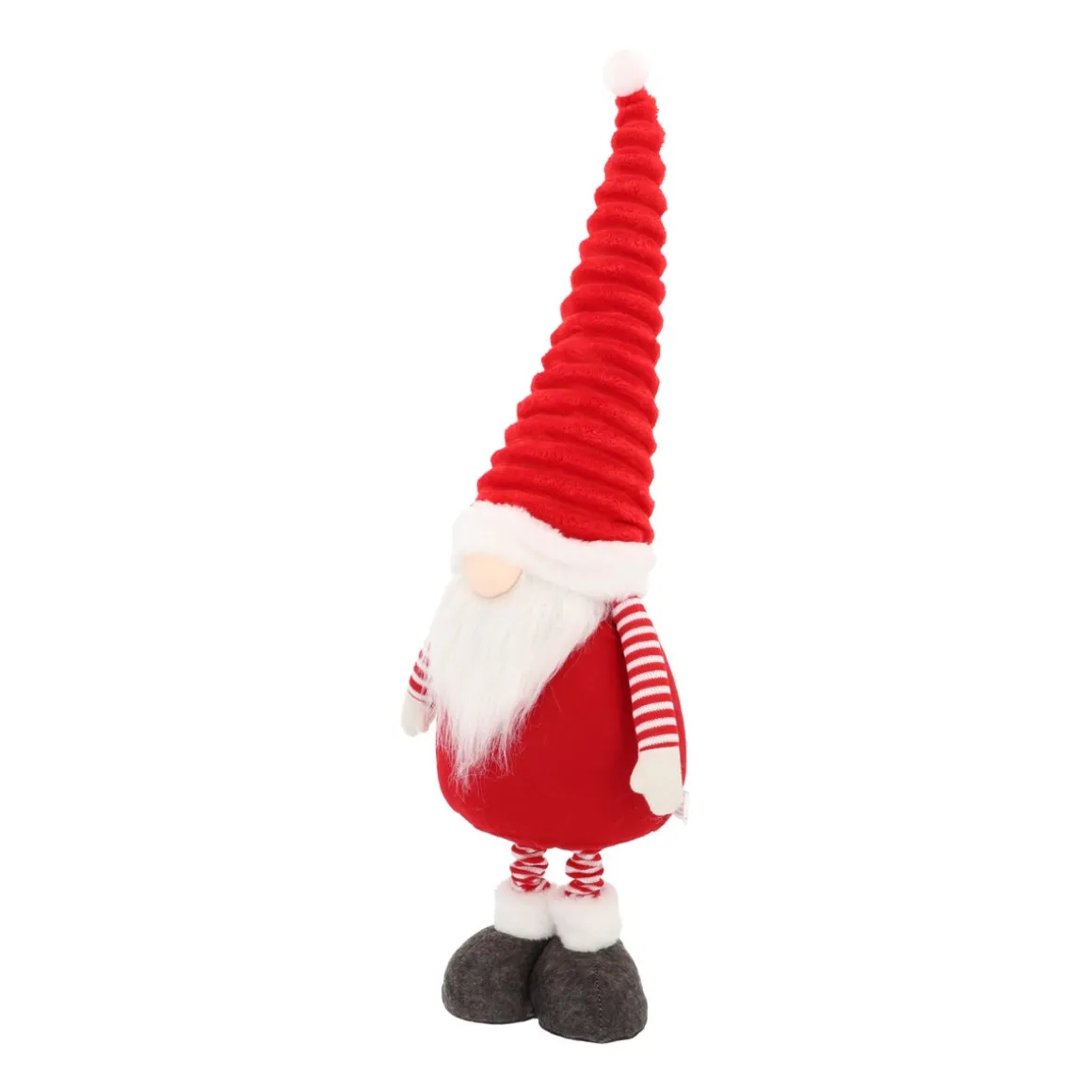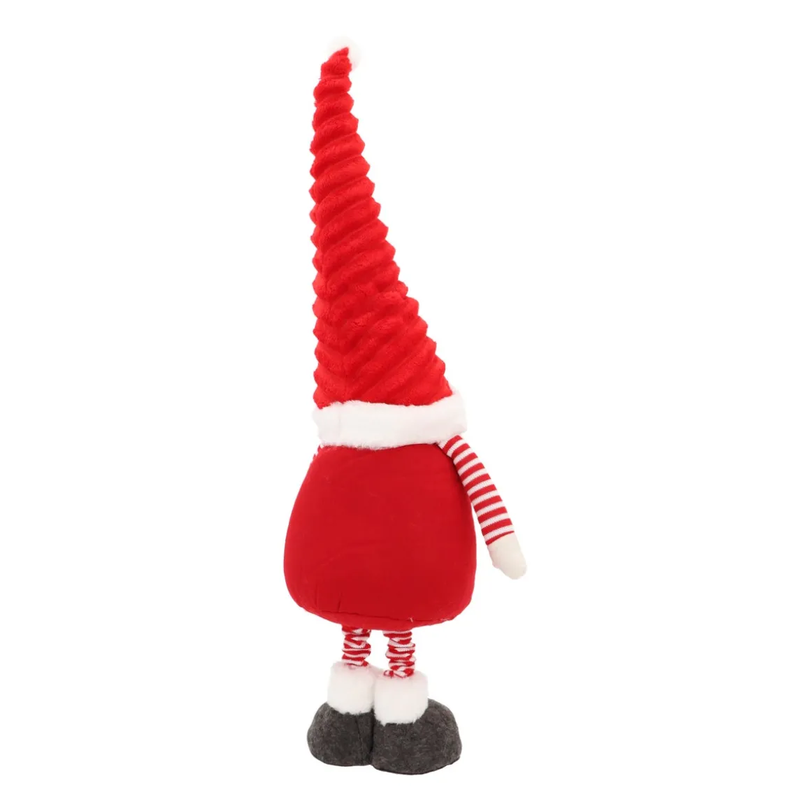 Dieser freundliche Zwerg ist aus der Weihnachtszeit nicht mehr wegzudenken. Mit seiner roten gerippten Mütze und seinem Filzoutfit ist dieser rot-weiße Wicjhtel bereit, die Show zu stehlen. Biege seine Zipfelmütze in deine Lieblingsposition – durch einen flexiblen Draht. So gibst du ihr buchstäblich deine eigene Note. Dieser charakteristische Weihnachtswichtel findet überall in deinem Haus einen Platz. Entscheidest du dich für einen subtilen Gnom von 65 cm auf dem Sideboard oder stellst du ihn mit seiner vollen Länge von 90 cm neben deinen Weihnachtsbaum oder die Tür? Alles ist möglich! Ein schönes Detail: Es gibt ein LED-Licht im Ende seiner Mütze, sodass er auch als Nachtlicht verwendet werden kann.